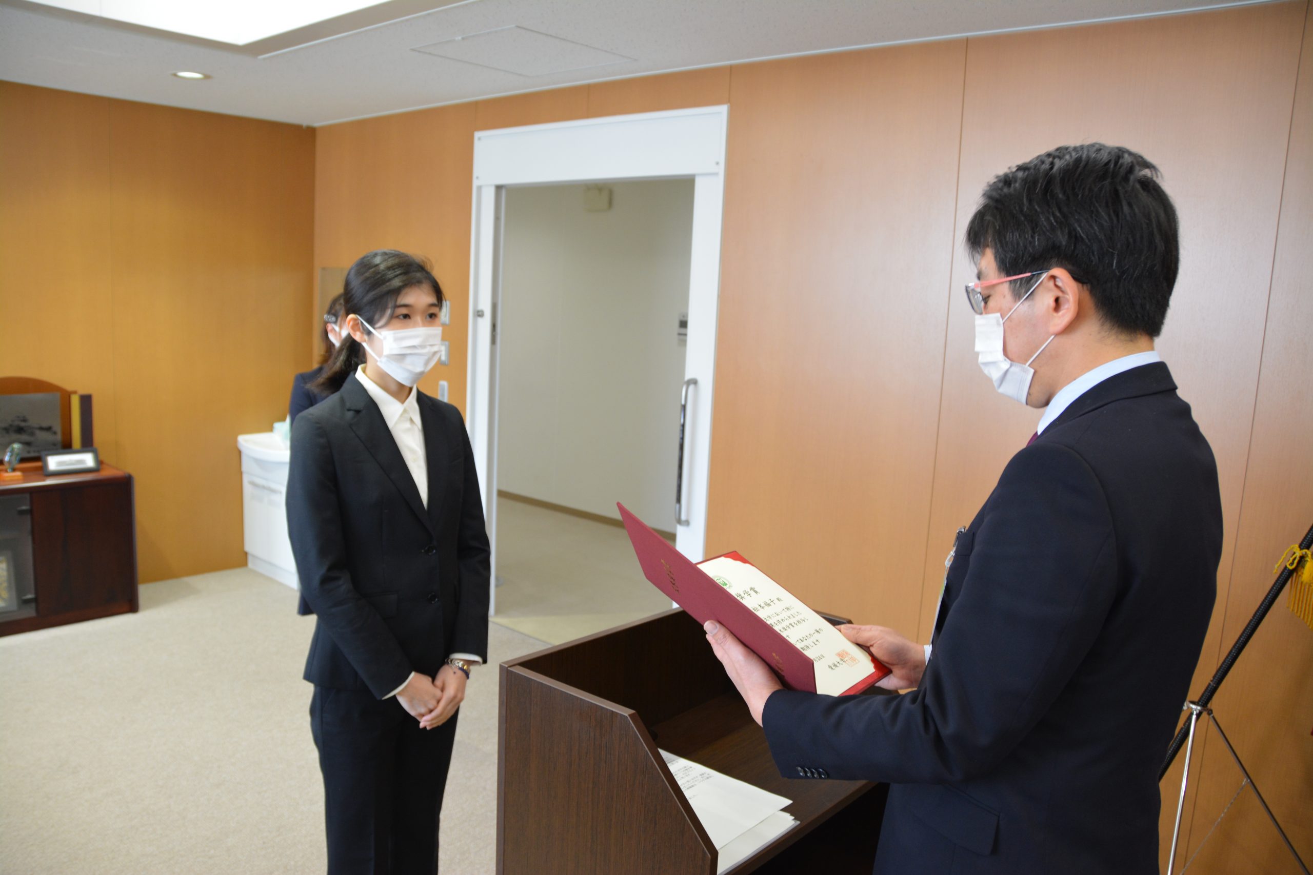 授与式では、山下政克研究科長が受賞者へ賞状を授与し、功績をたたえました。
