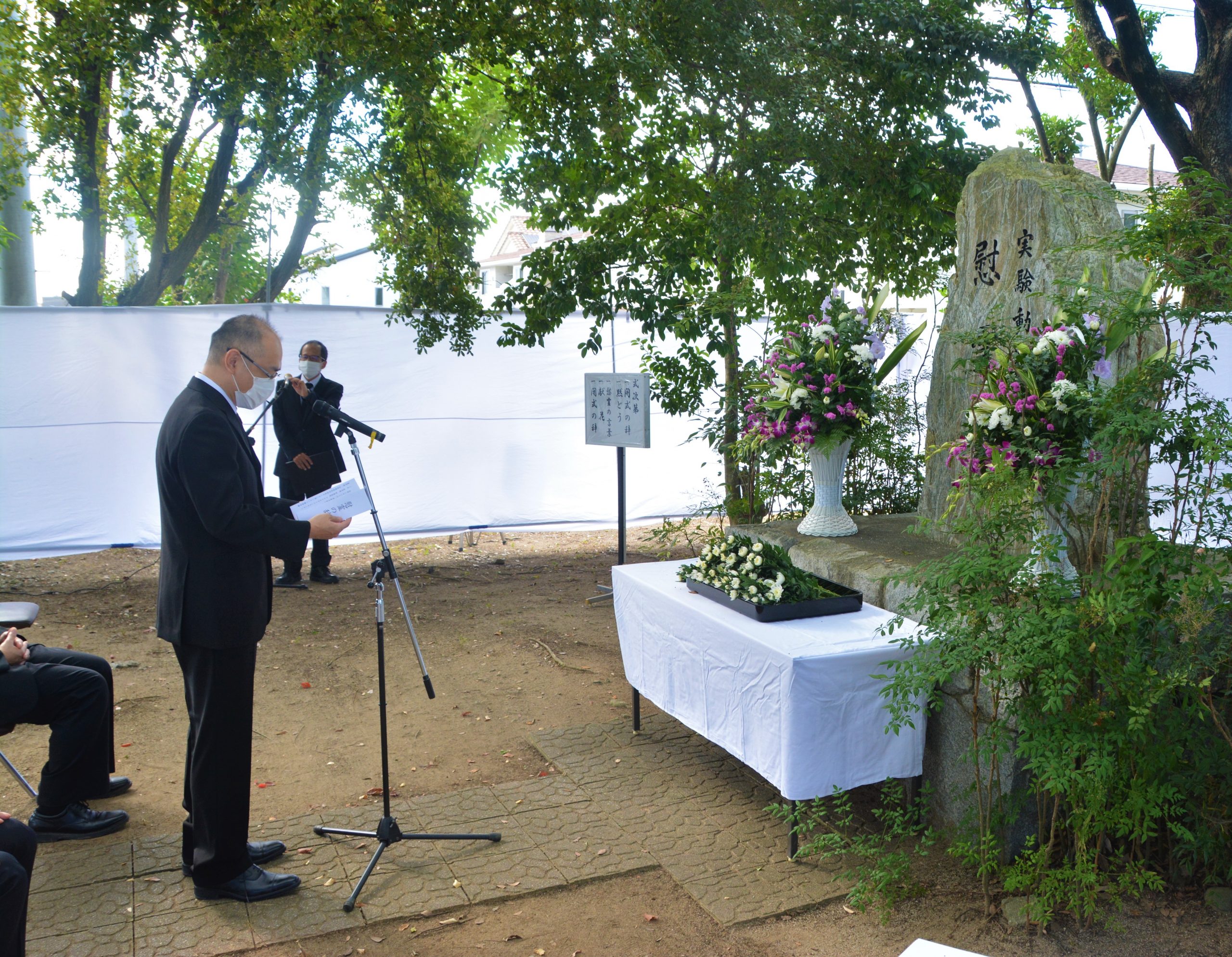 続いて、学術支援センターの金川基動物実験部門長が、実験動物の諸霊に安らかに眠っていただくよう祈念して慰霊の辞を述べました。