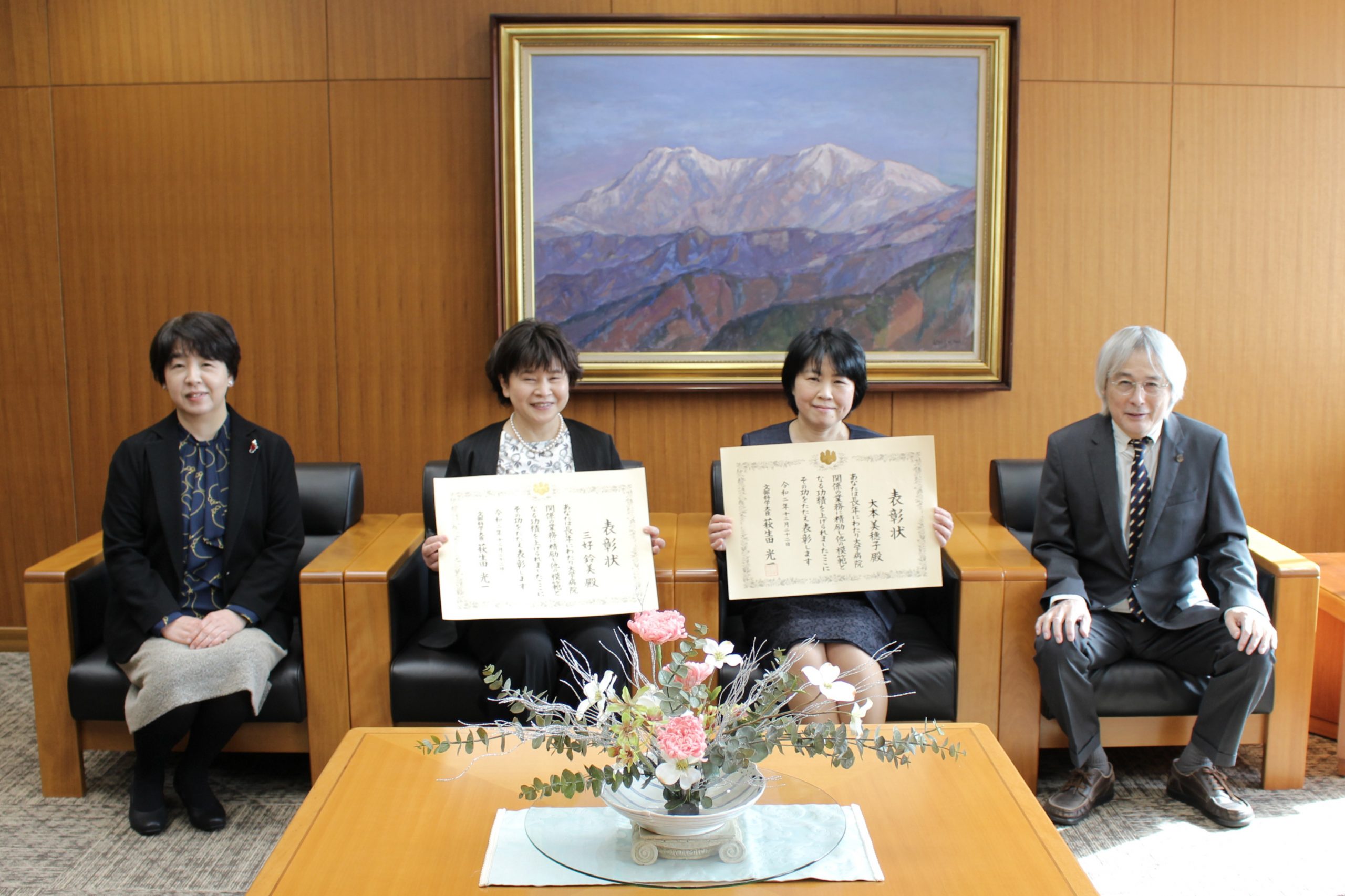 例年,表彰式は文部科学省で行われていますが,今年度は新型コロナウイルス感染症感染防止のため,表彰式が中止となり,令和3年1月29日(金)に本学で表彰式を行いました。