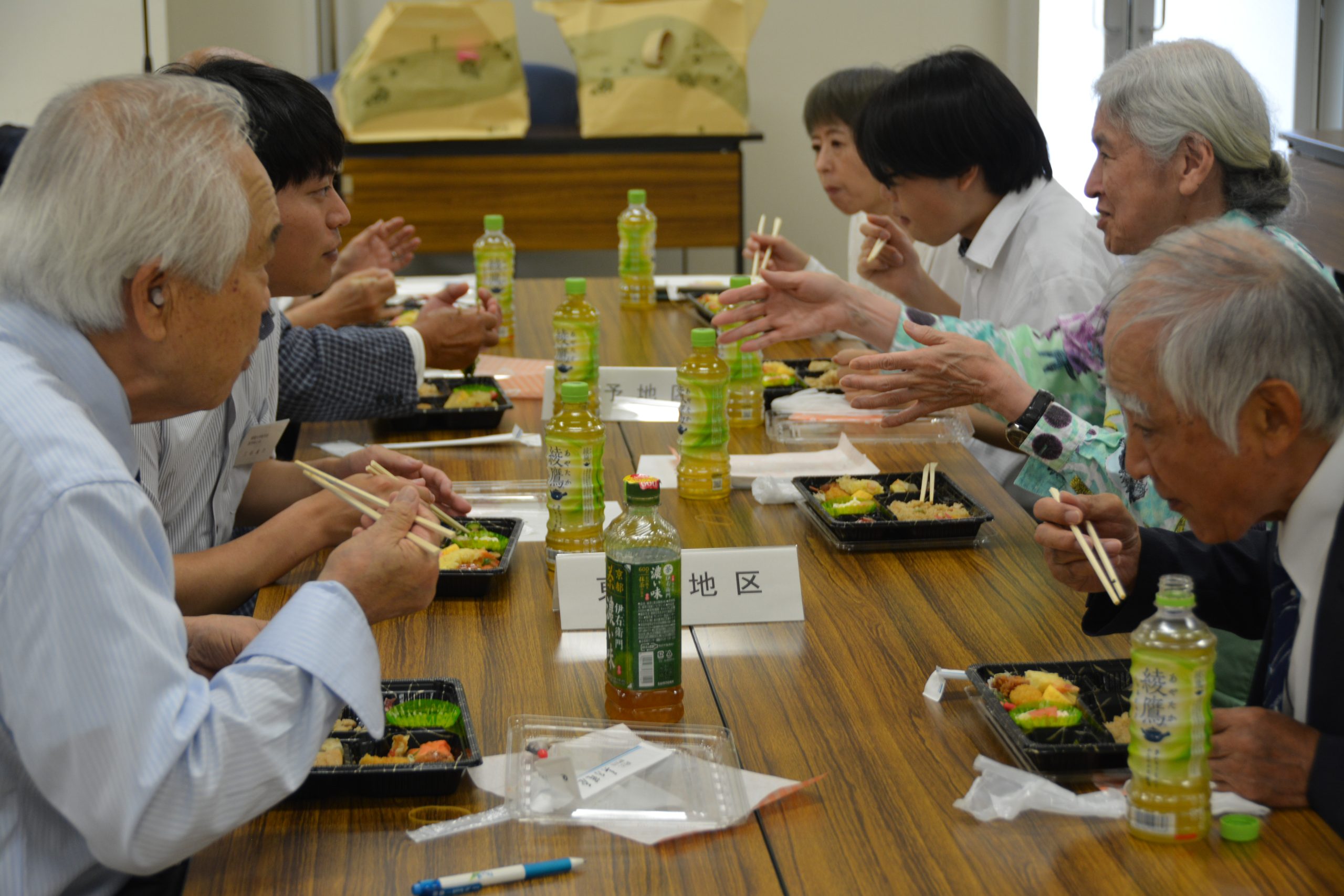議事終了後には、解剖学実習に参加している医学科2年生と白菊会会員との昼食懇談会が開かれ、学生からは貴重な経験に対する感謝の気持ちや医師を志した動機などが述べられました。それを受け、白菊会会員から学生へ応援のお言葉が贈られ、和やかな会となりました。