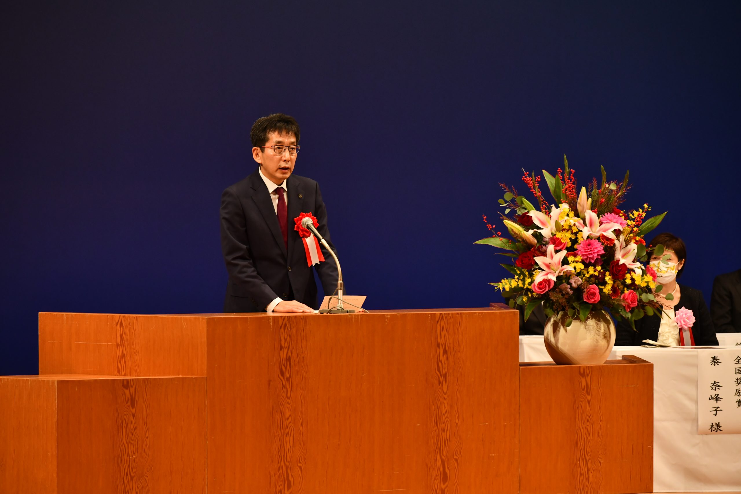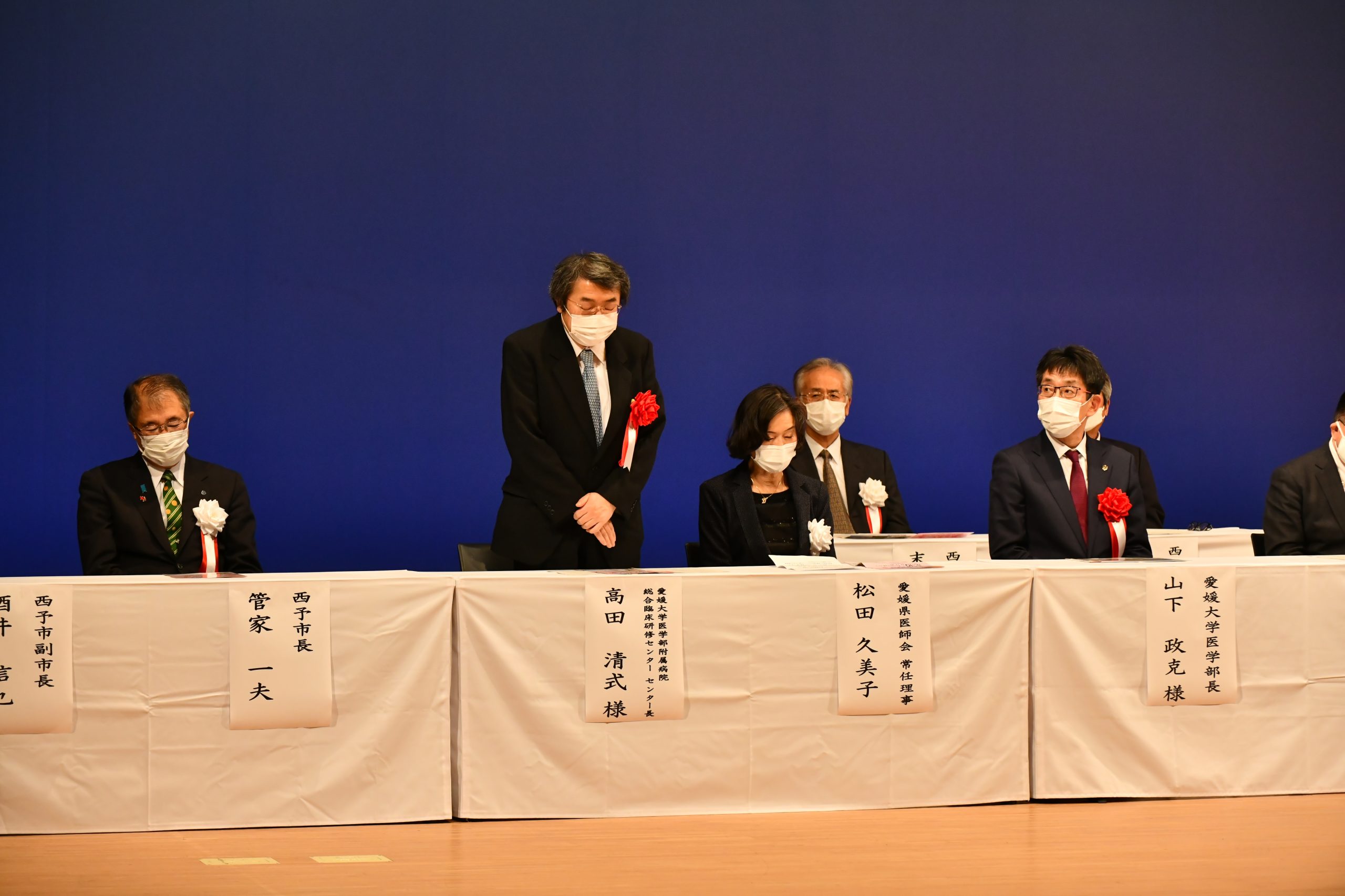 昨年度の表彰式は新型コロナウイルスの影響で中止となったため、医学部内で表彰式を実施しましたが、今年度は従来通り西予市での開催となり、西予市長より表彰状を授与された山根さんの功績を称えるため、山下政克研究科長および高田清式地域医療支援センター長が表彰式に列席しました。