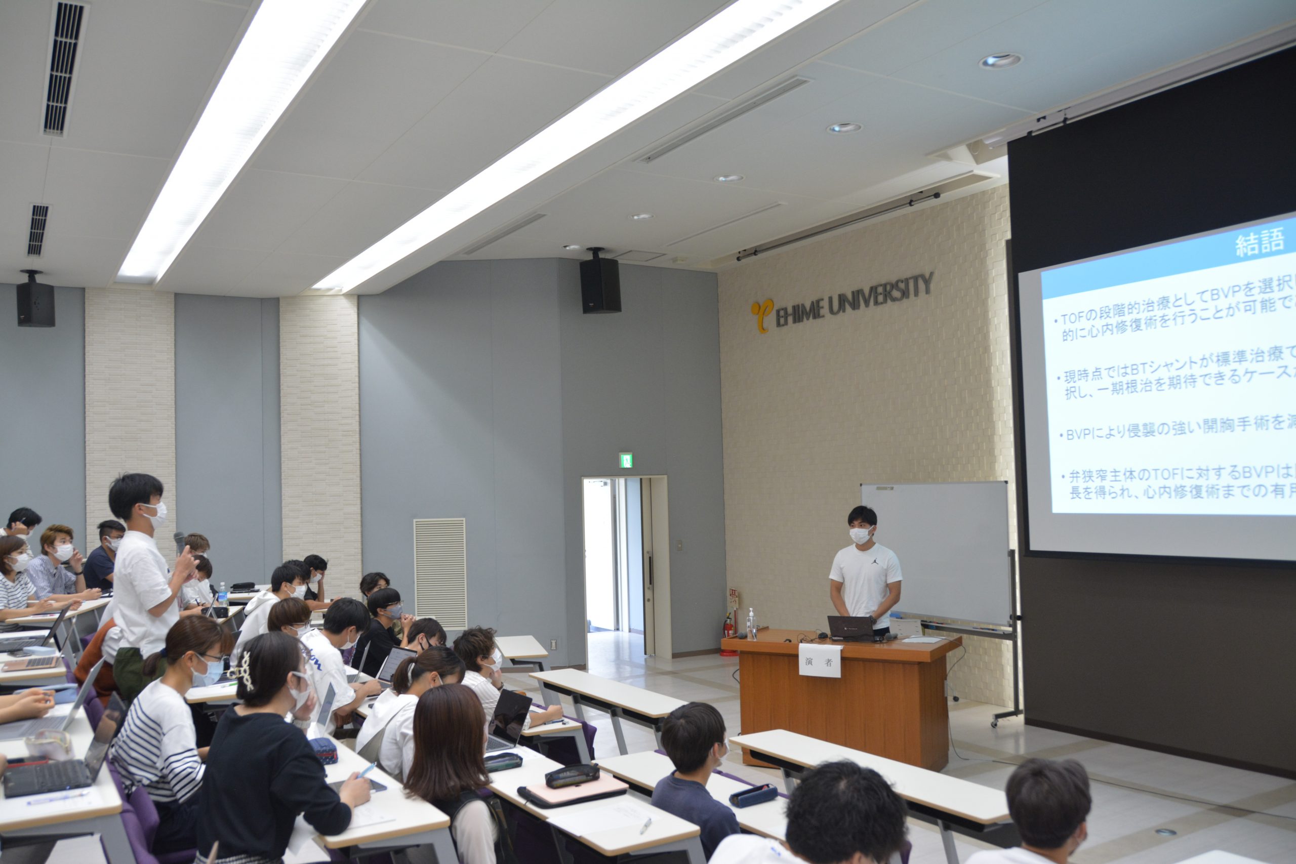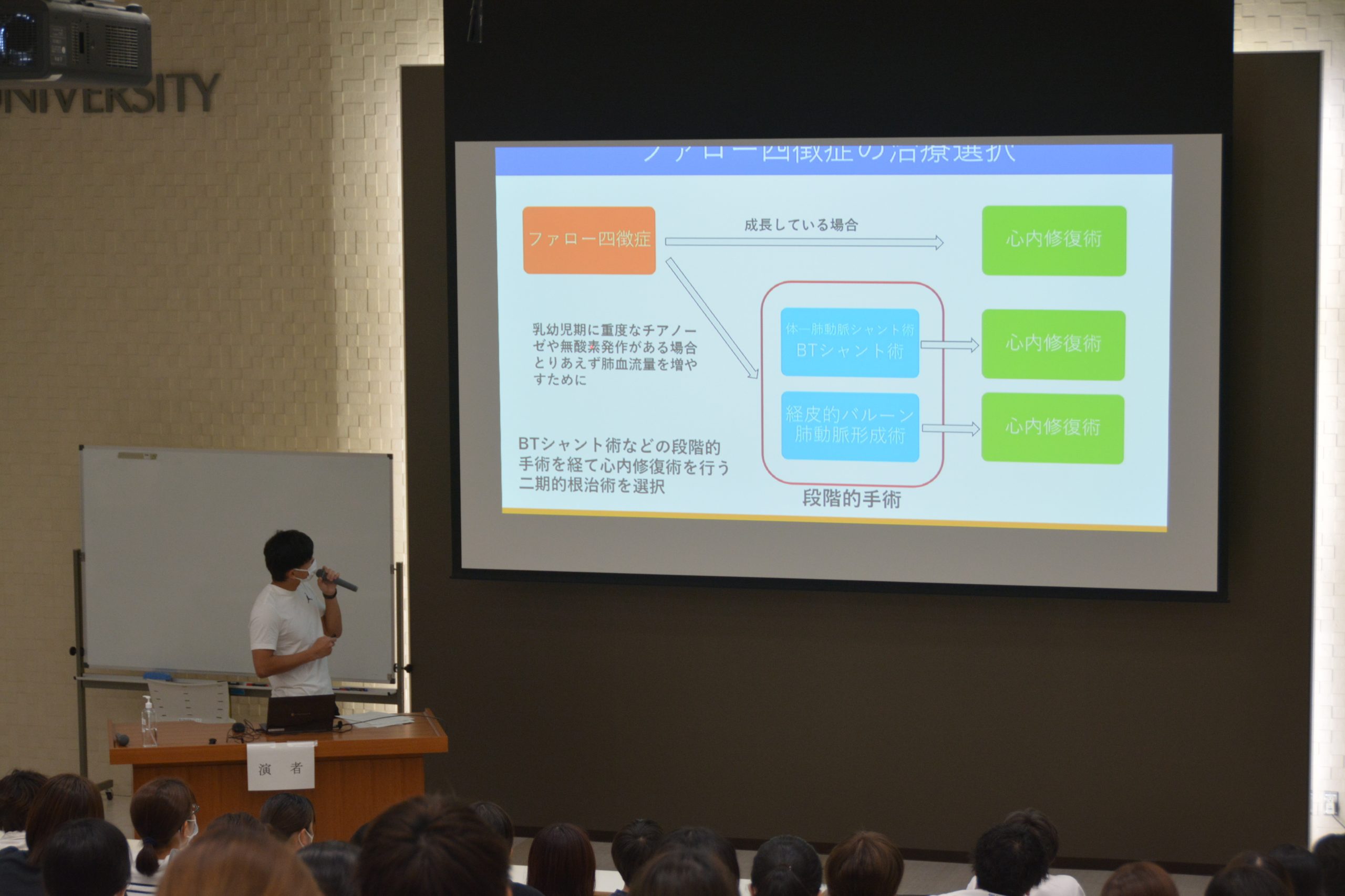 令和4年9月28日(水)、医学部創立40周年記念講堂において、第20回医科学研究発表会を開催しました。「医科学研究」とは、研究室配属による研究医の育成を目的とした授業で、医学部医学科の1~4年生に開講しています。この発表会は、学生が発表する他、座長も学生が務め、進行も学生が行います。