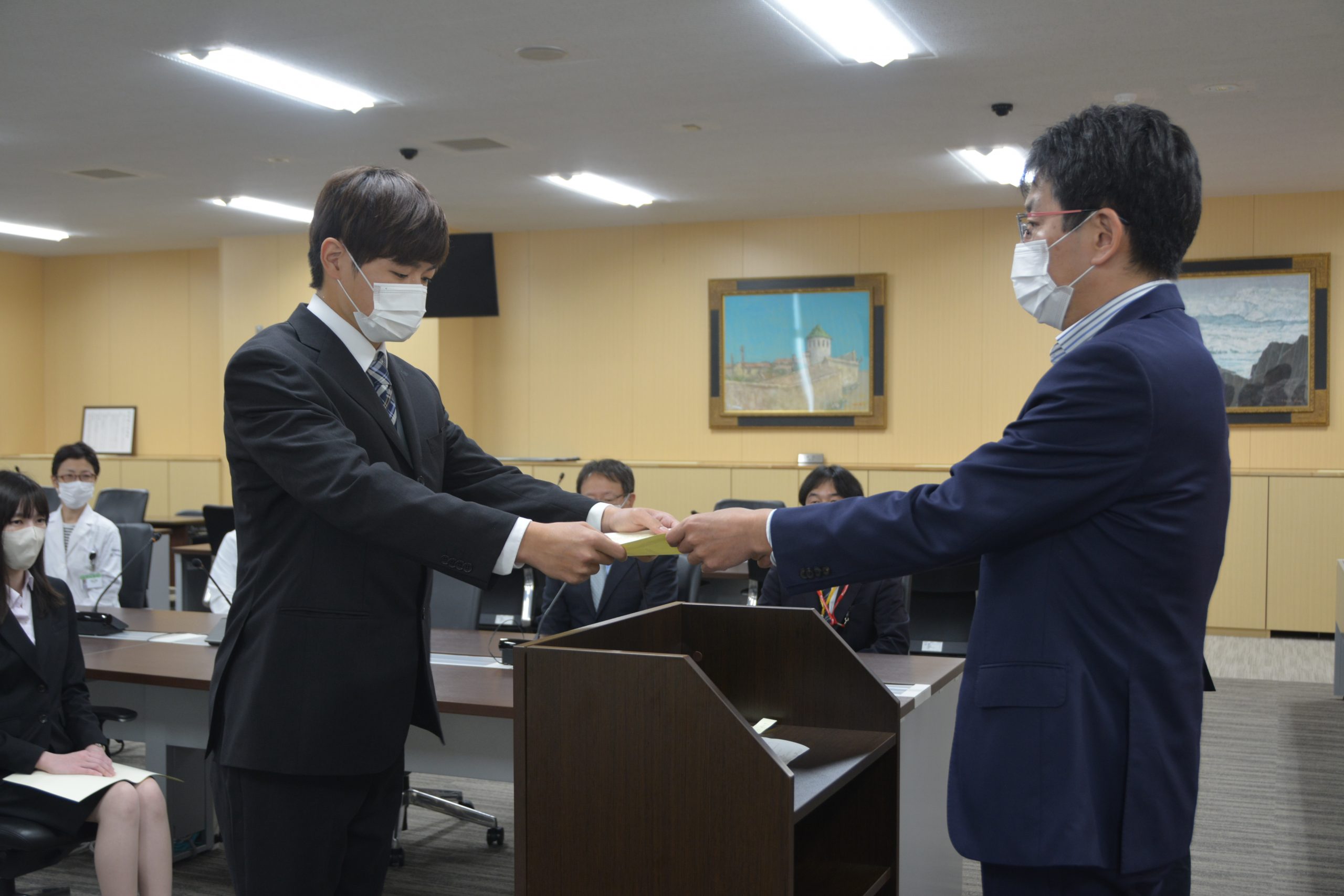 表彰式では、山下政克医学部長から受賞者に表彰が授与され、「コロナ禍で苦労の多い中、多種多様な発表があったのは健全で喜ばしいこと。是非、先端の研究や一流の学会などに参加し、今後も研究を続けて欲しい。」と祝辞と激励の言葉が贈られました。