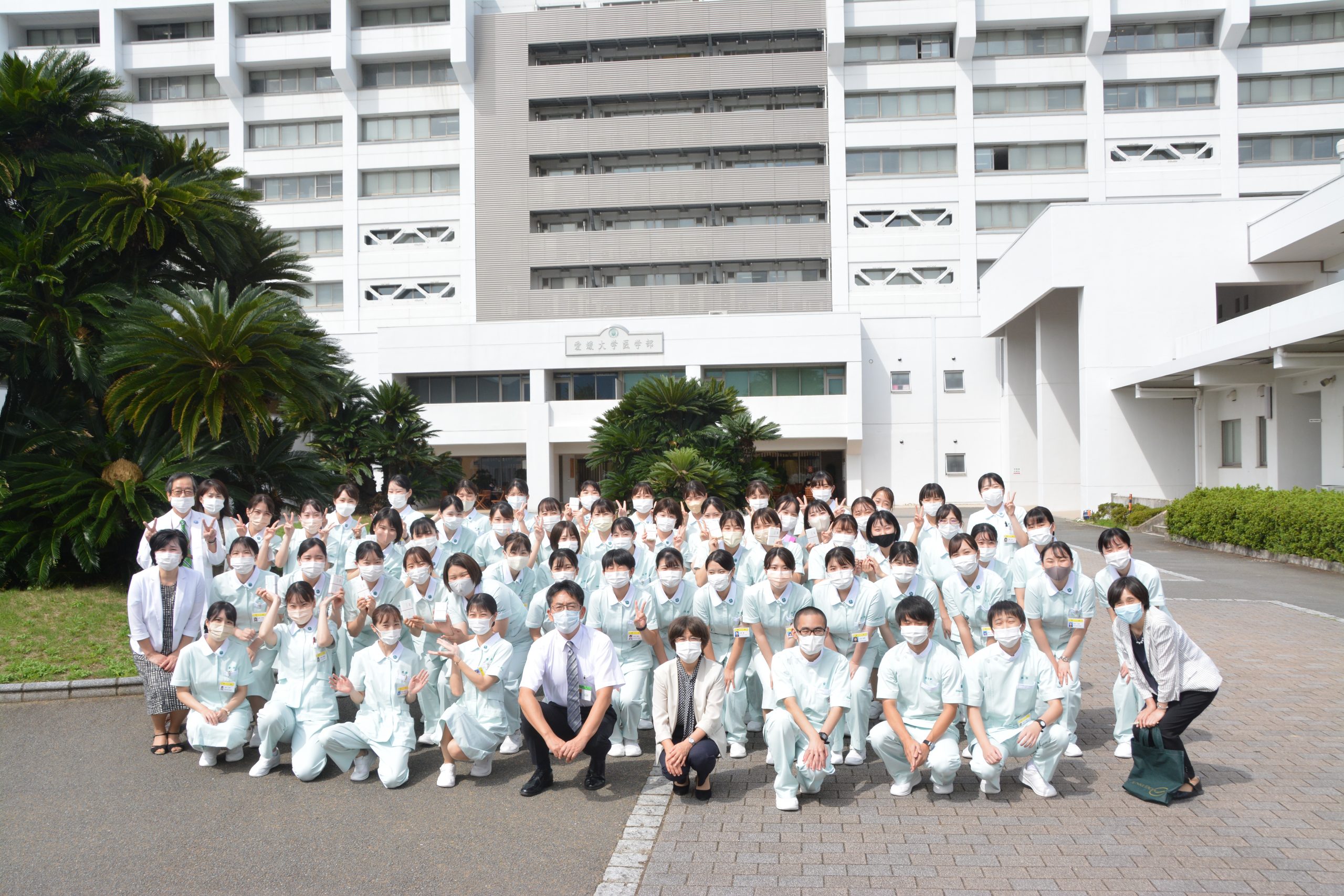 式では、臨地で本格的に患者に接することになる学生にむけて、山下政克医学部長と陶山看護学科長から実習に臨む心構えと学生への激励の言葉があり、これを受け、看護学科3年生の西尾香音さんが、「コロナ禍でたくさんの制約がある中、実習の機会があるのはありがたい。この場を活かして学びにしたい」と臨地実習にむけて誓いの言葉を述べました。