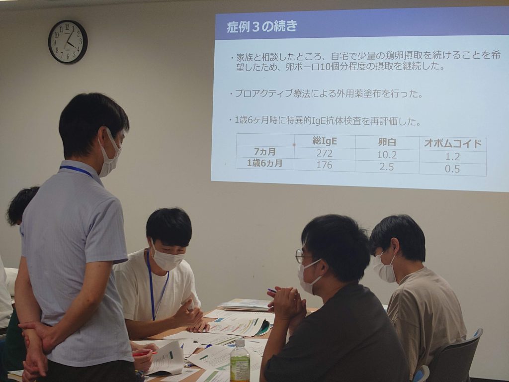 参加者からは、「負荷試験において、摂取する原因食物の量をどのように決めるか、アナフィラキシー等の症状が出現した際にどの程度で中止するか、症状に対してどのように対応するかを学ぶことができた」「プリックテストを実際に行うことができて良かった」「初診から負荷試験までの一連の流れを、実際自分で考えながらできたのはためになった」などの感想をいただきました。