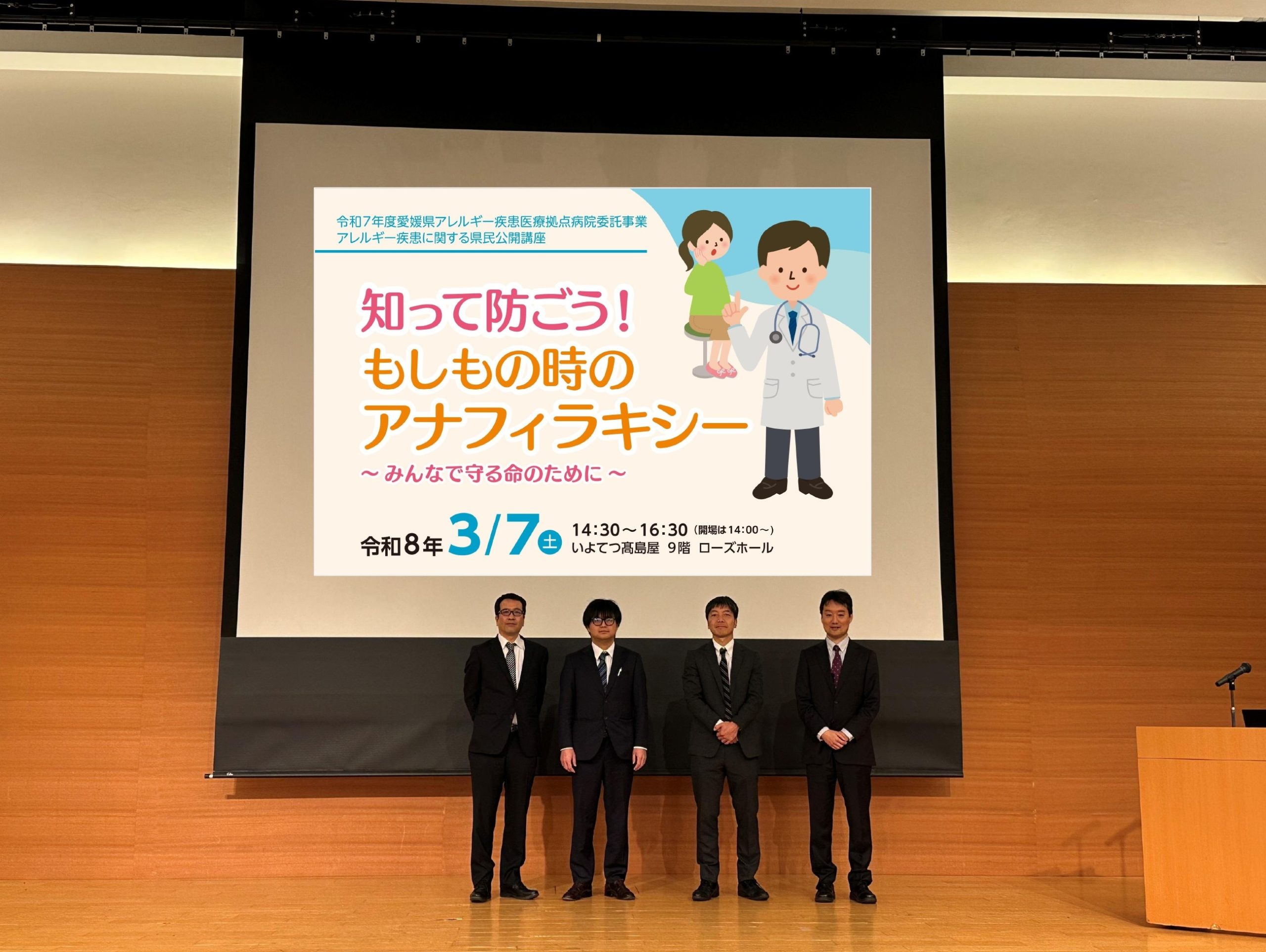 愛媛県アレルギー疾患医療拠点病院事業の一環として、県民の皆さまにアレルギー疾患への理解を深めていただくことを目的に、県民公開講座を開催いたしました。