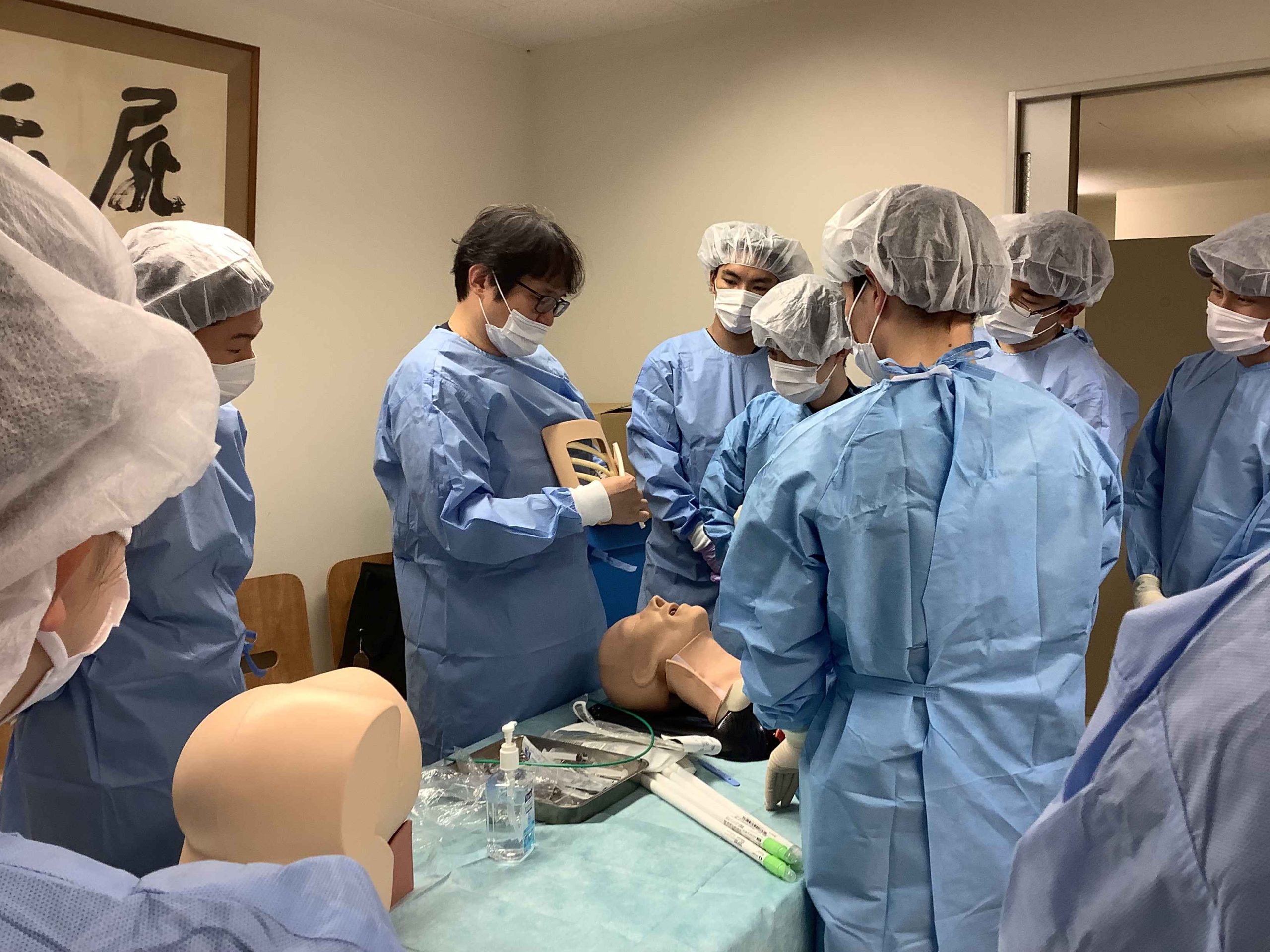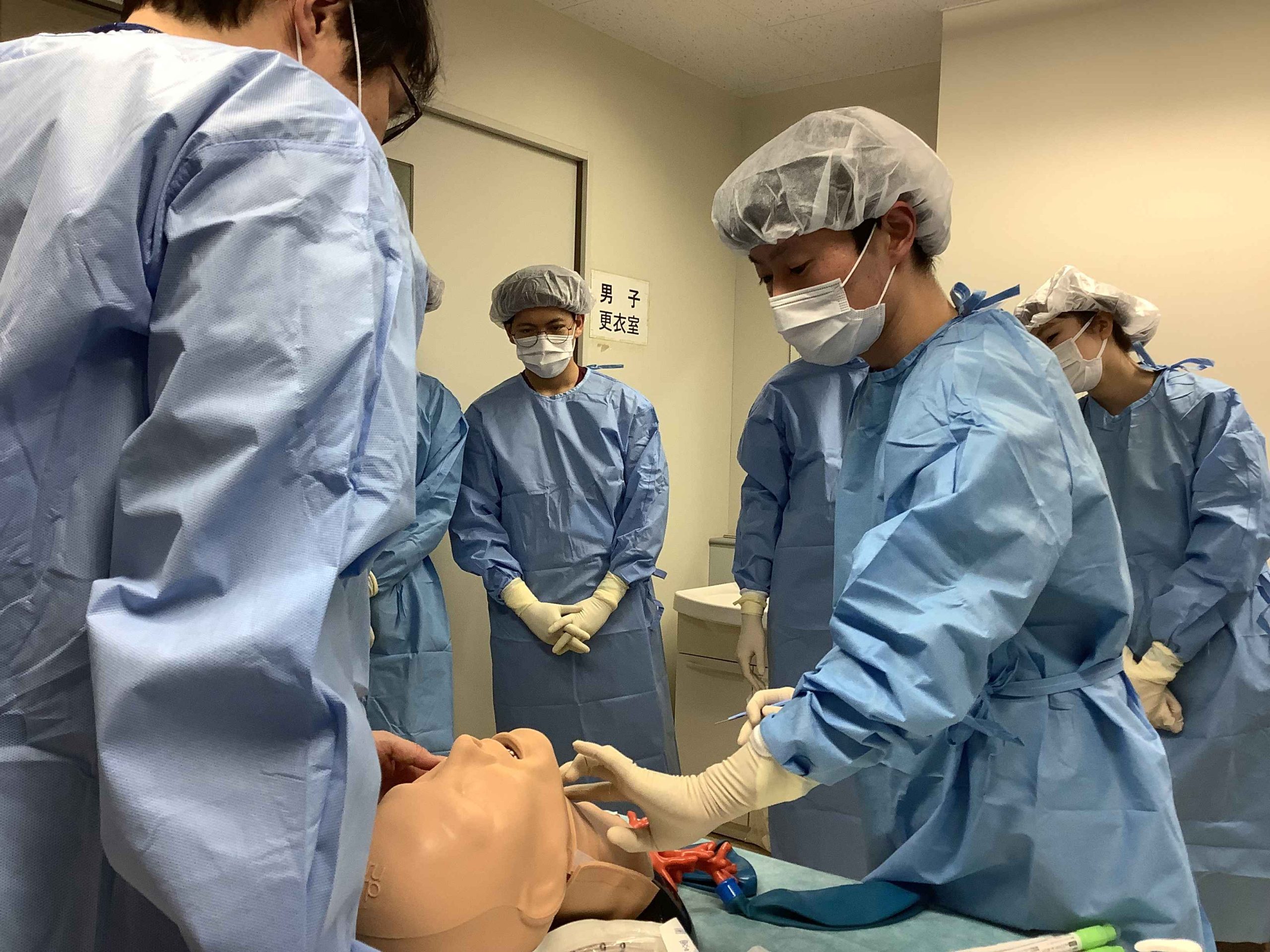 ・研修医になってから経験した手技もありましたが、理解度を深める良い機会となりました。特に一緒に学んだ学生に説明する際に、自分の考えを言語化して整理することもできた点で貴重な時間を過ごすことが出来ました。このような機会をいただき、本当にありがとうございました。