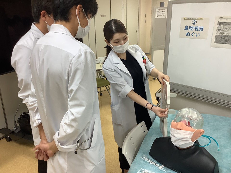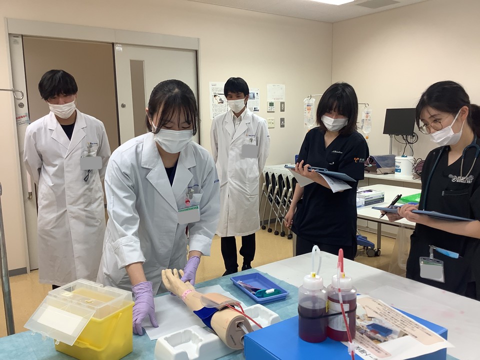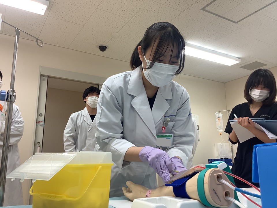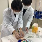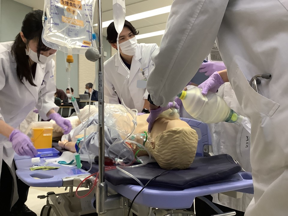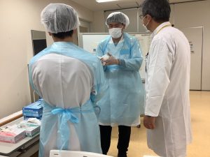参加した学生からは「汚染された場所などを可視化する場面があったが、目に見えないからこそおろそかになり易い予防策を、正しく行わなければならないと強く感じた」、「ICUでの模擬映像では、手技・手技の説明以外にも、同意書や患者さんへの説明などコミュニケーション方法が分かりやすく、勉強になった」、「感染症の患者対応や手技についてフィードバックをもらいながら出来てとても勉強になった」、「単なる手技だけではなく仲間との声の掛け合いやリカバリーの大切さを感じた」といった感想やコメントがありました。1週間にわたり多くの先生方にご担当・ご指導いただきました。本当にありがとうございました。