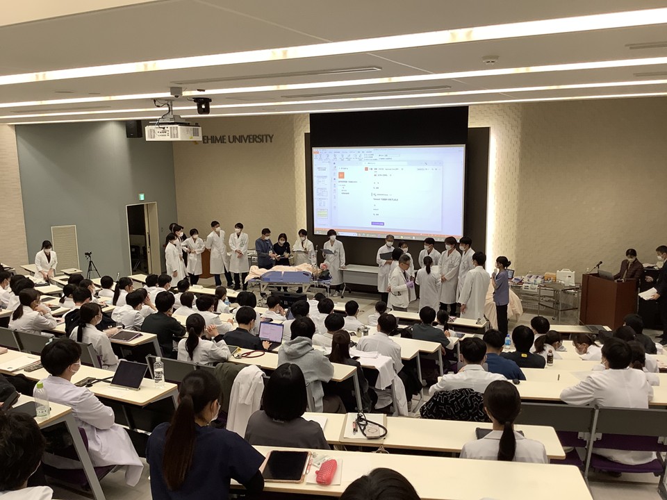 愛媛大学は感染症医療人材養成事業(文部科学省)に採択され、その一環として4年前より「シミュリンピック週間」を開催してきました。今年度も第5回目として3月2日(月)~6日(金)の期間で開催し、感染対策の重要性について学びました。愛媛大学 医学科5年生の120人が参加しました。
