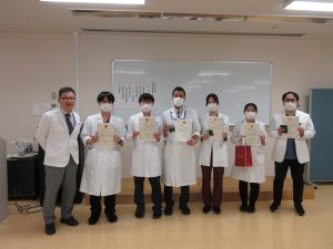 センター長杯とは、総合臨床研修センターが独自で、この1年間に各分野で頑張った研修医に贈られる賞です。