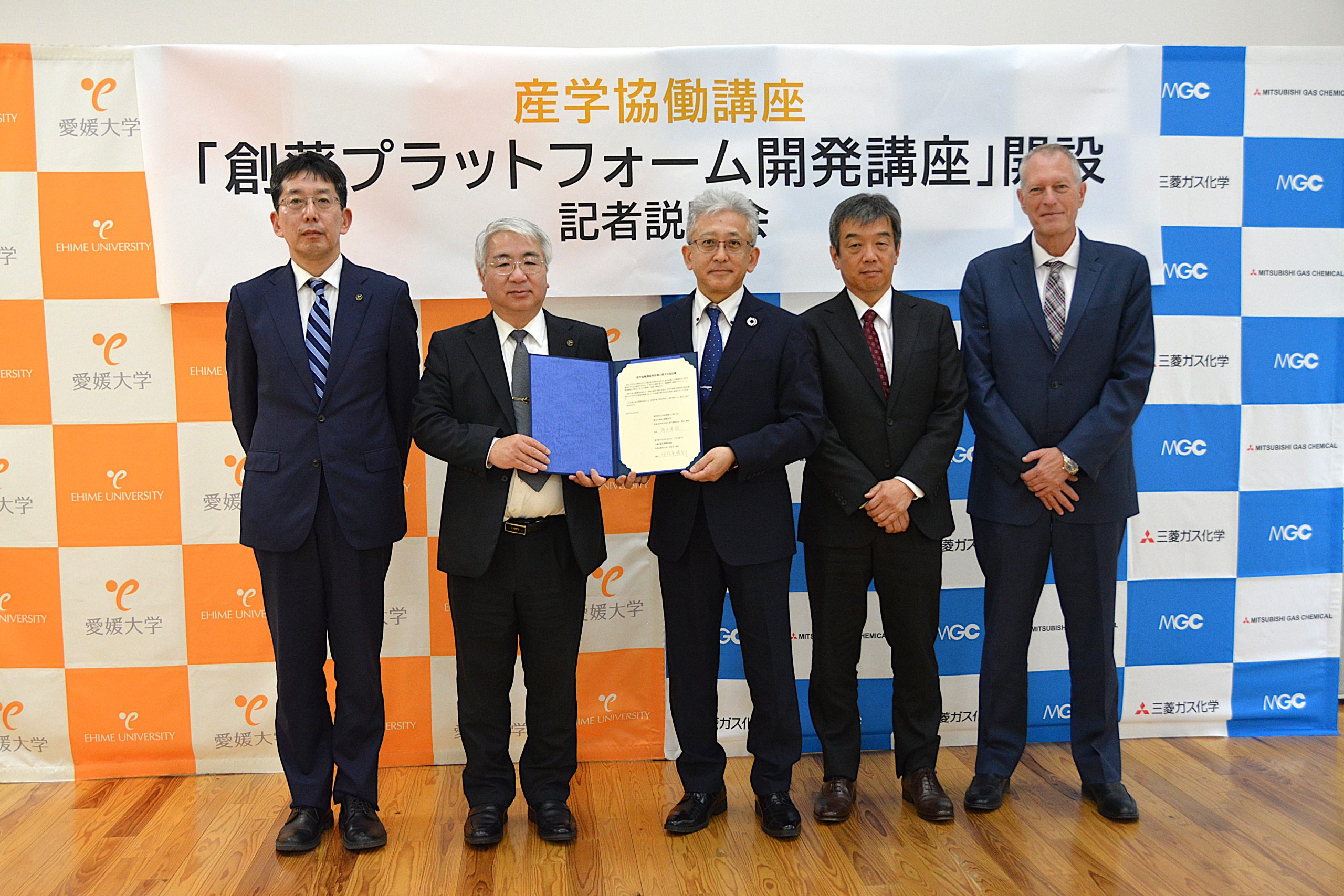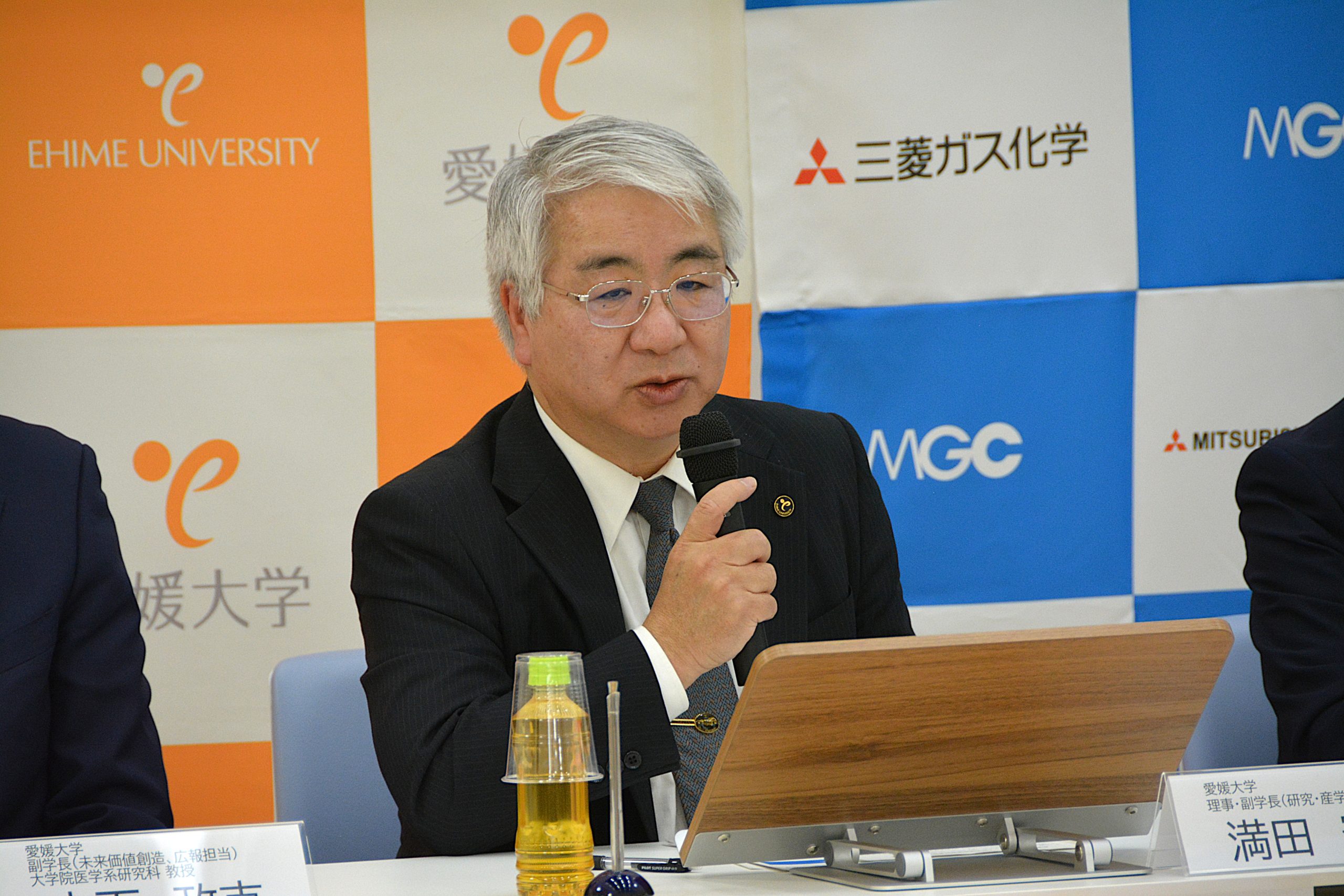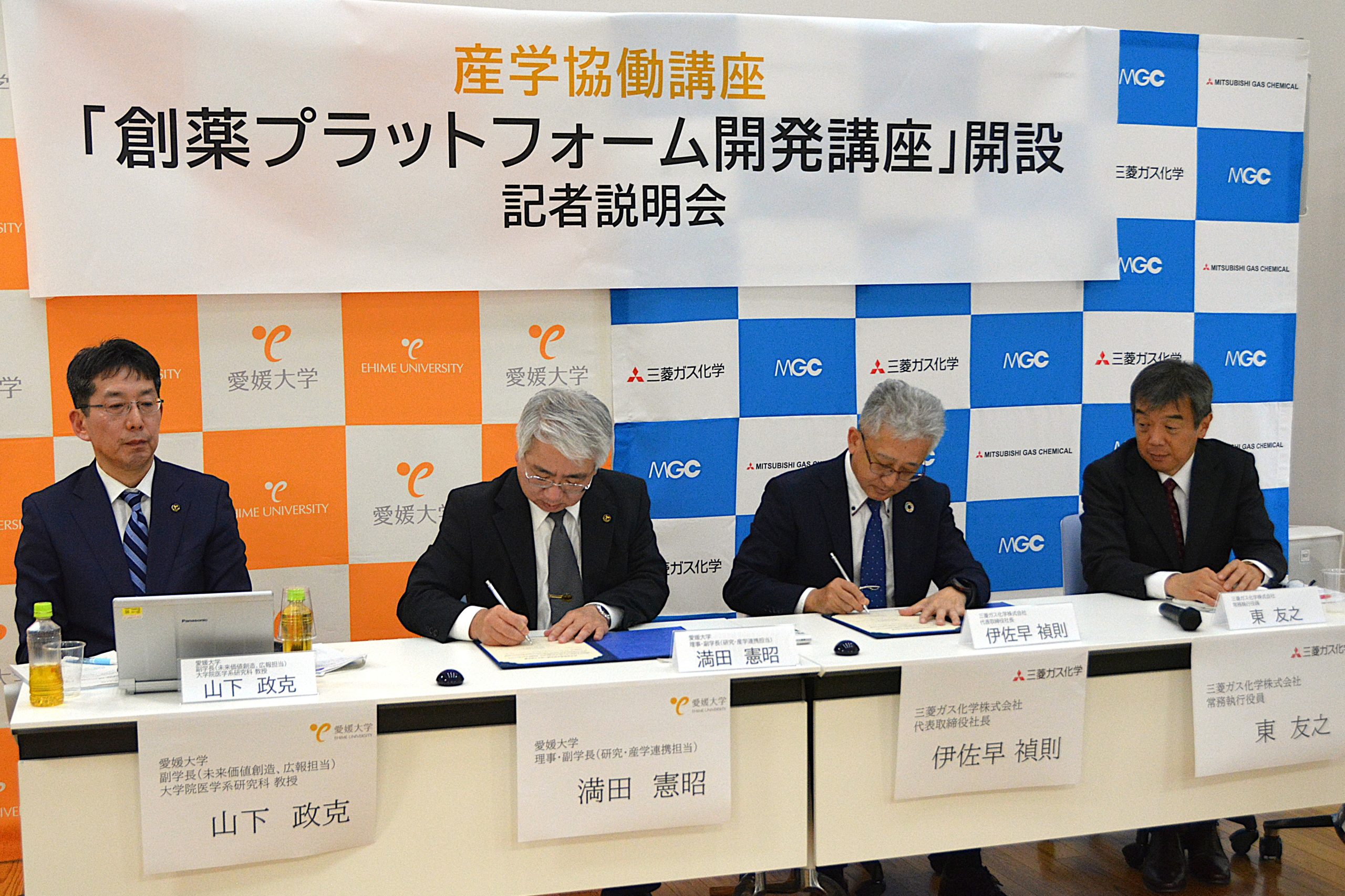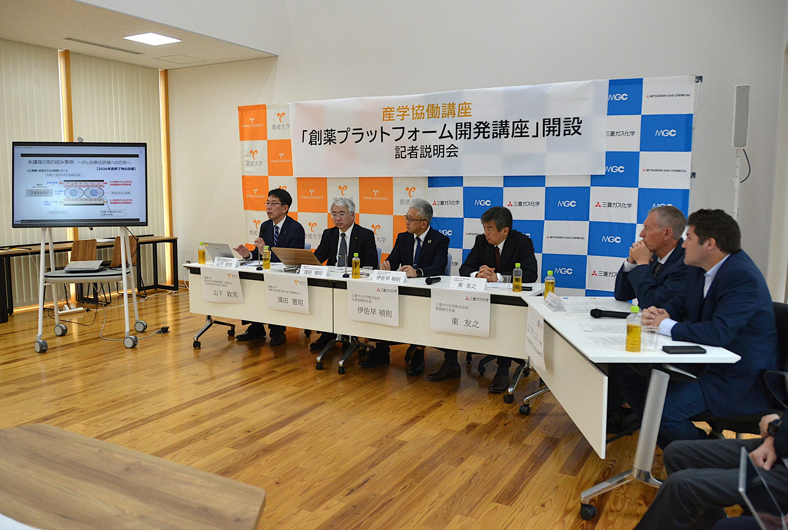 医学系研究科では、三菱ガス化学株式会社との産学協働講座「創薬プラットフォーム開発講座」の設置にあたり、令和7年4月25日(金)、両者による共同記者説明会を行いました。