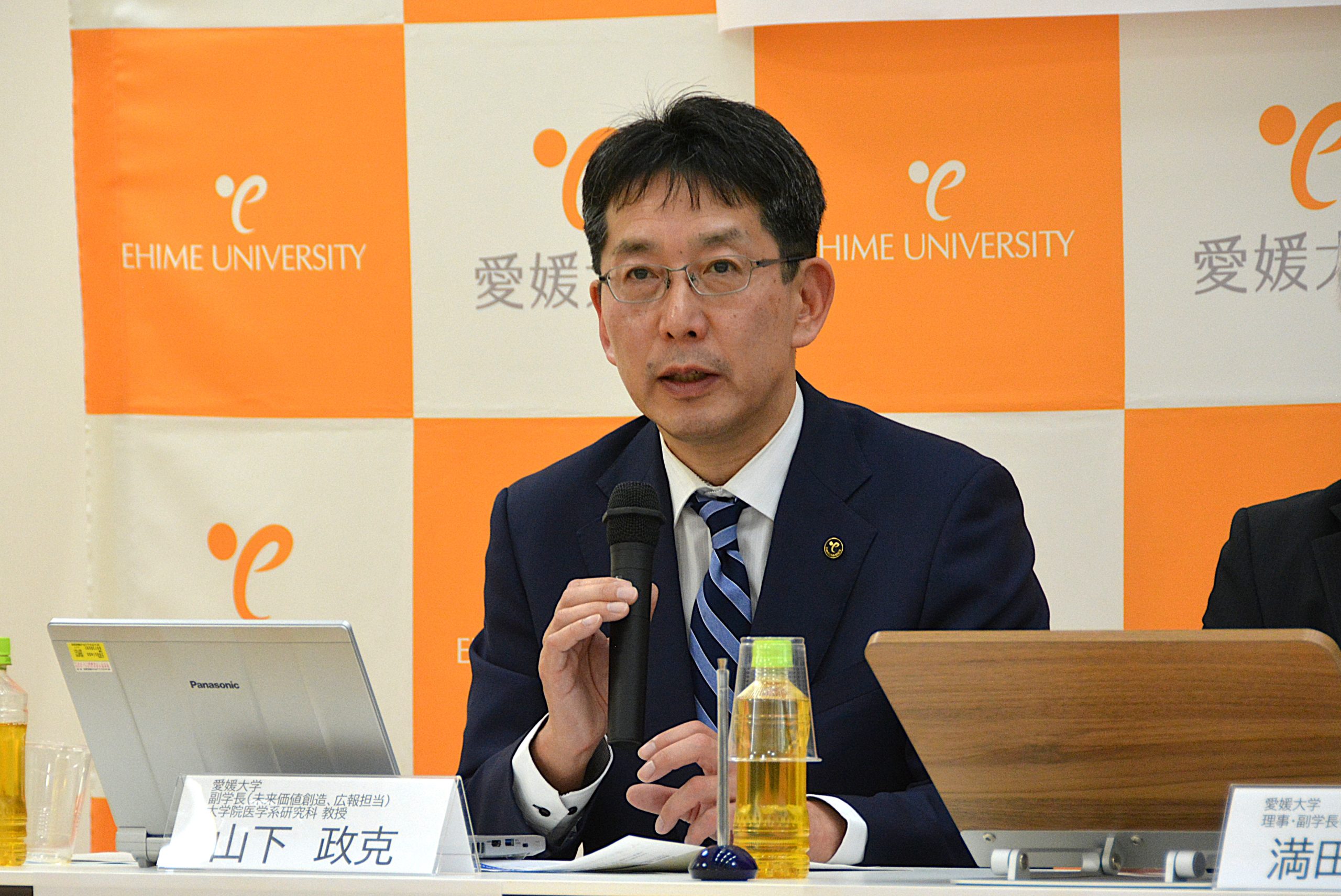 引き続き、本講座の研究統括である、山下政克副学長・医学系研究科教授から、本講座の設置に至った経緯、創薬における社会課題、また、本講座におけるMPSを活用した研究計画と社会実装に向けた今後の展望について説明がありました。