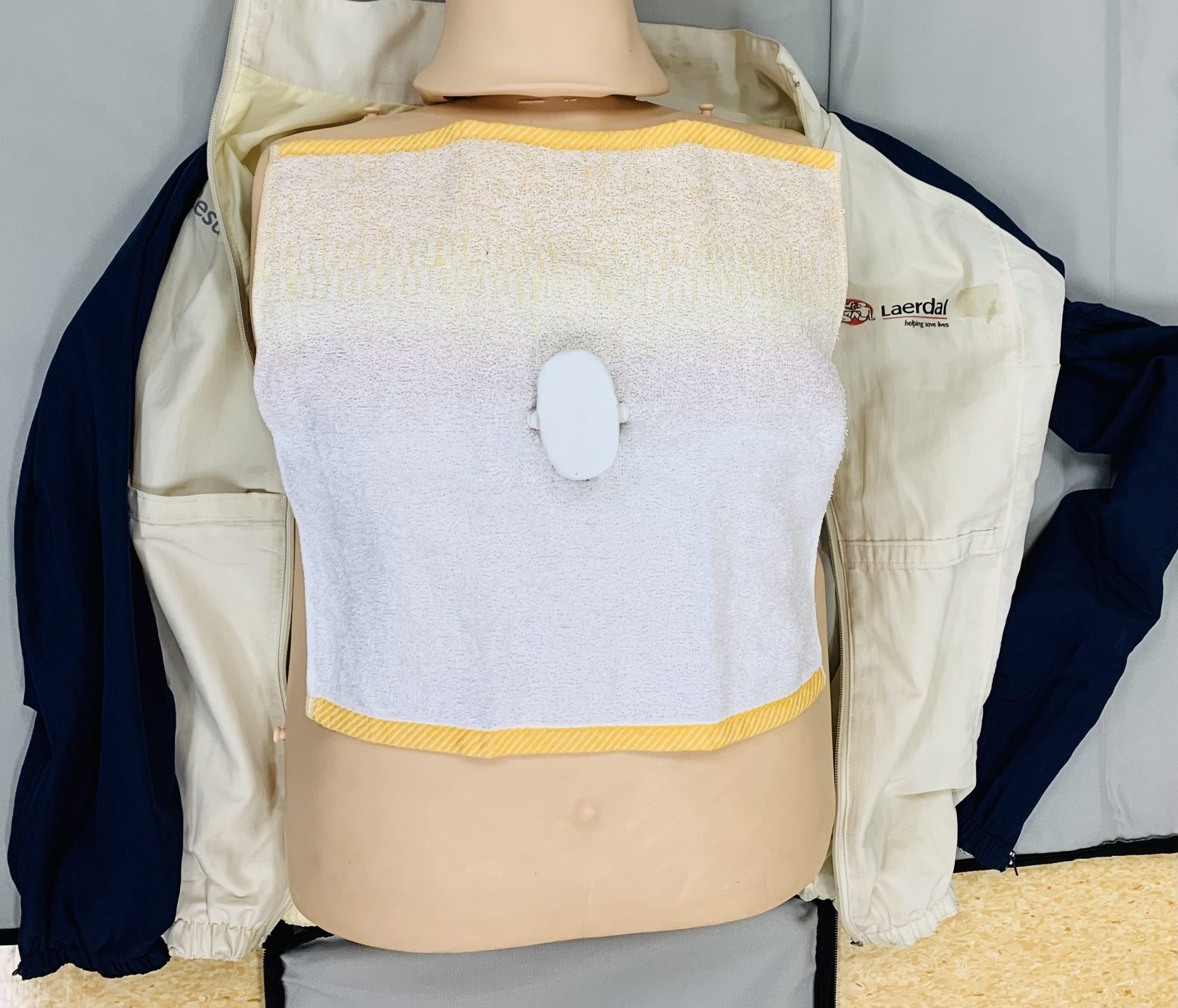 冨岡さんが応募したテーマは「命を救うハンカチ」で、誰でも正しい姿勢で胸骨圧迫することができ、心肺蘇生法による救命率を上げることを目的として、試行錯誤を繰り返しながら独自に開発した補助具です。