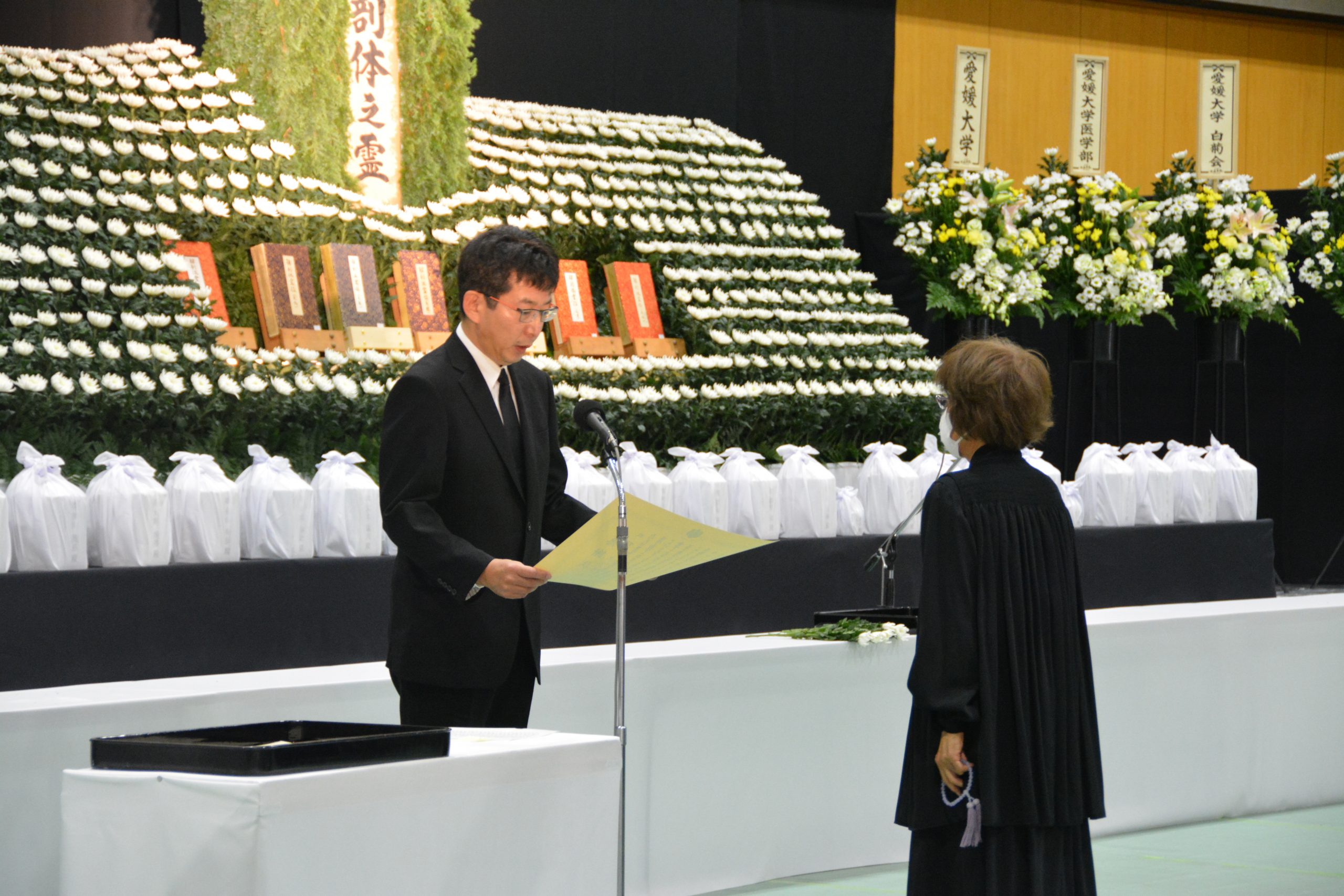 令和2年度愛媛大学医学部解剖体慰霊祭と文部科学大臣感謝状伝達式及び御遺骨返還式を実施しました