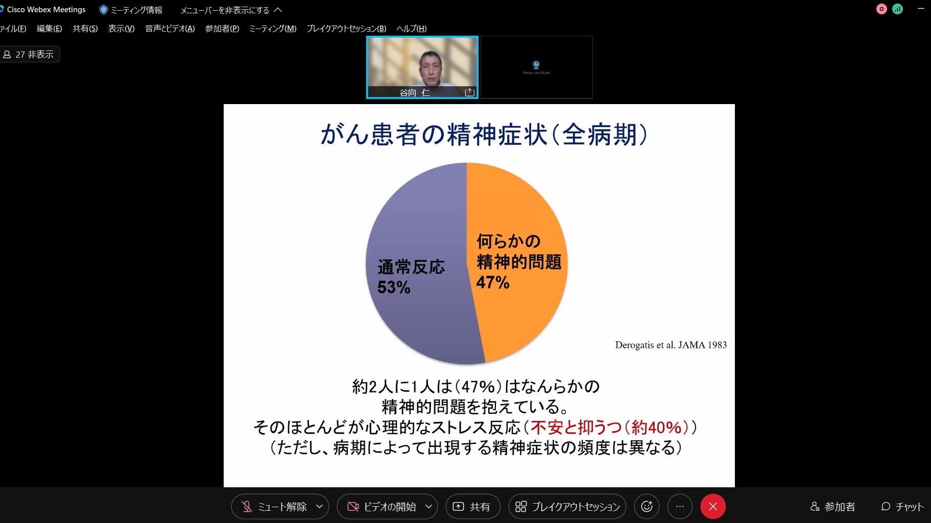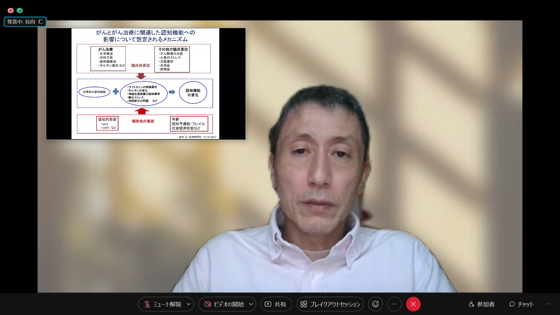 2021年10月23日(土)に、令和3年度看護実践セミナーを開催しました。本セミナーは、新型コロナウイルス感染症予防のためオンラインで開催し、講師の京都大学大学院医学系研究科精神障害リハビリテーション学教室 谷向仁准教授から、「がんと認知機能障害」というテーマでご講演いただきました。