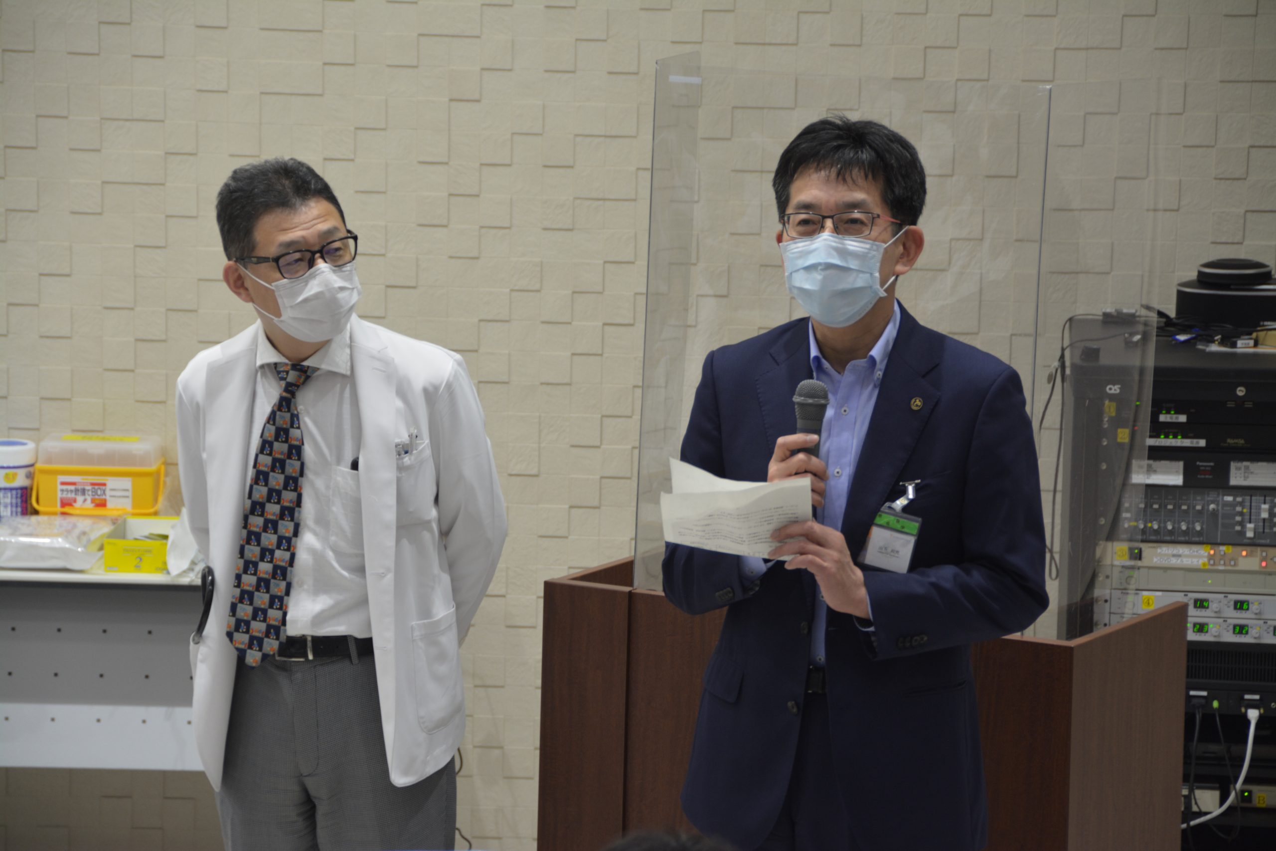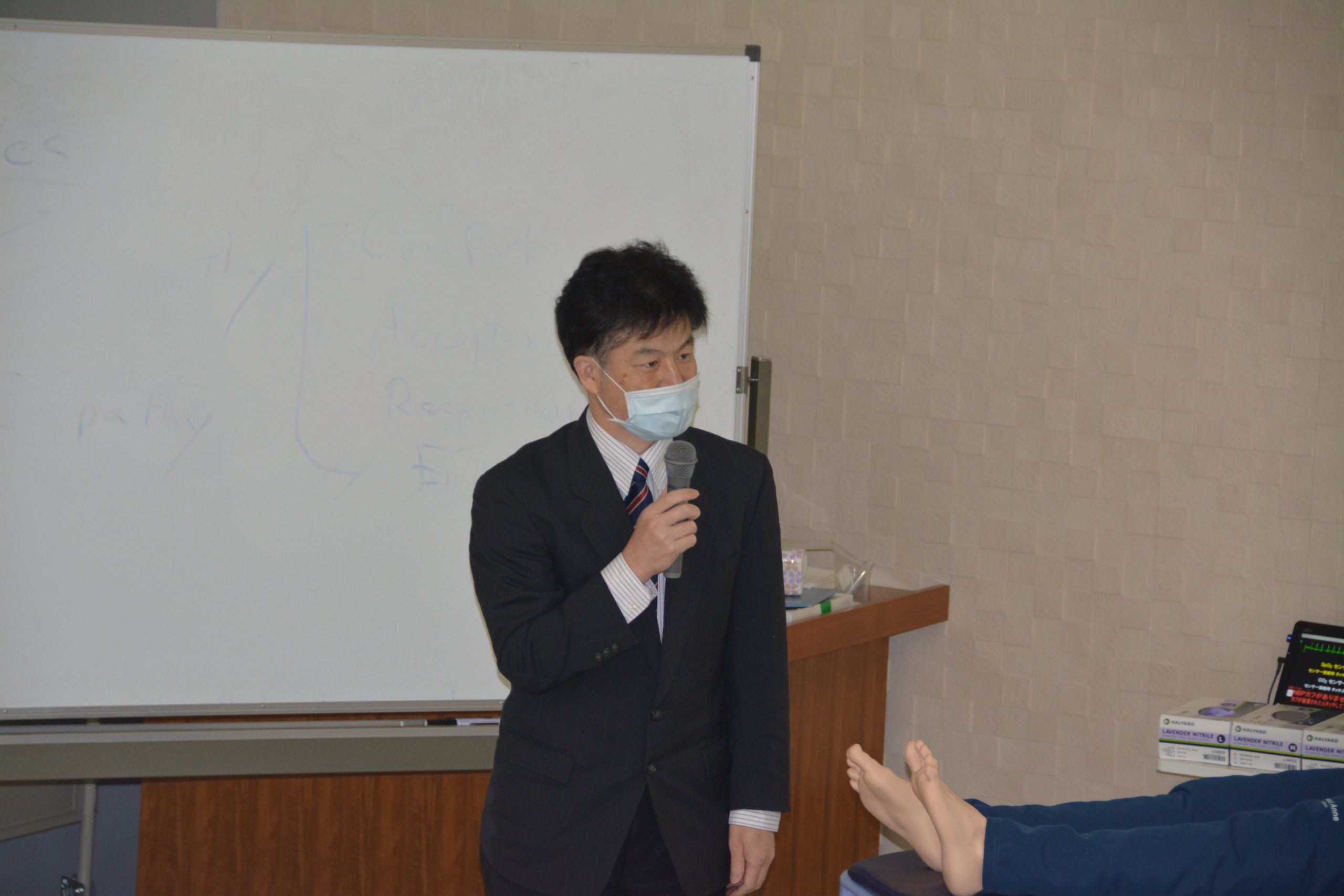まず始めに、山下政克医学部長より、シミュレータを活かした実習これからの展望を踏まえて激励の言葉がありました。
