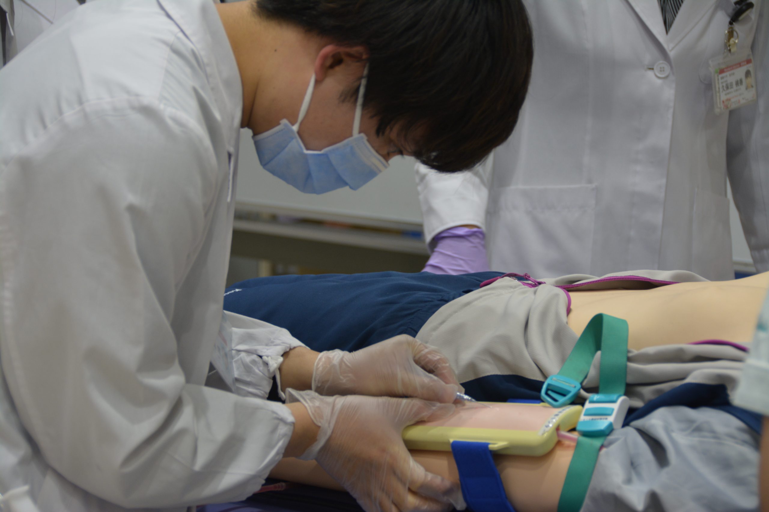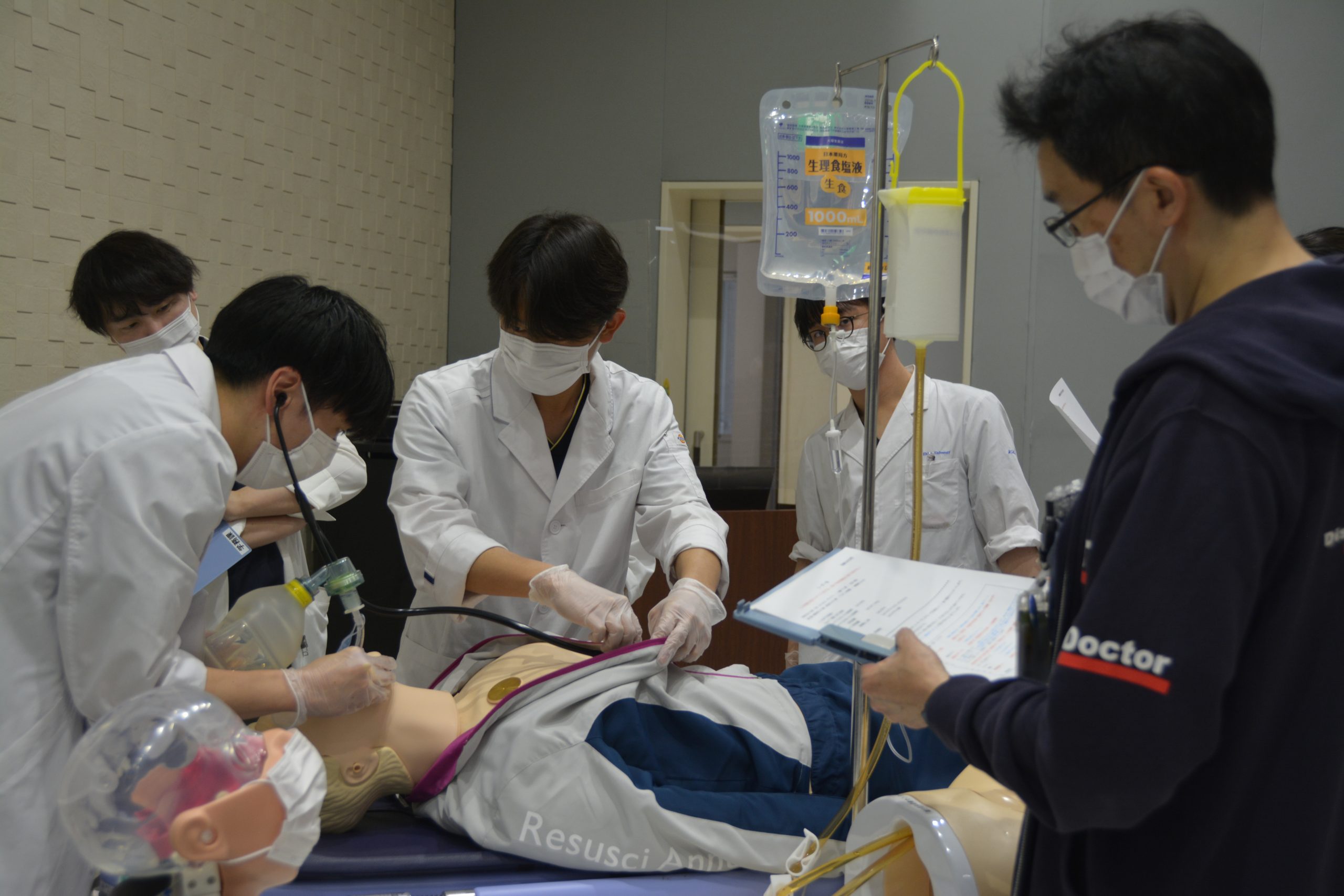 実習内容は、愛媛大学で独自に作成したVRコンテンツによるリアルタイムでの感染対策および集中治療室(ICU)における救急患者対応の経験演習、実際の症例を通じた感染症カンファレンス演習、および7種類のシミュレータ実習から構成されており、大会において、学生は実習を通じて習得した手技を活かし、12分の制限時間においてチーム内で連携し、急変した感染症患者に見立てたシミュレータへ診療を行います。