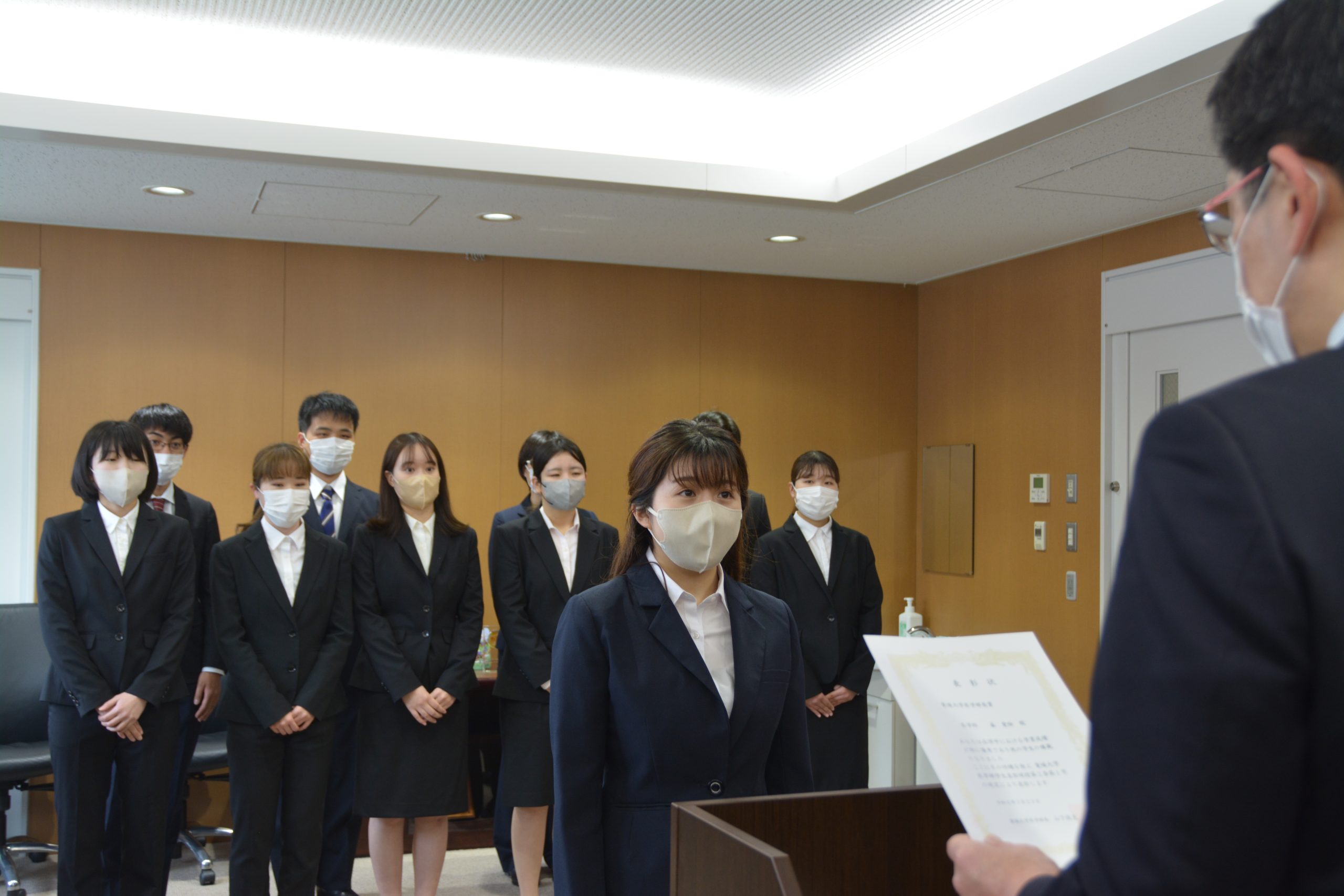 表彰後、山下政克医学部長から、「新型コロナウイルス感染症により様々な制限があった中での今回の受賞に至るまでの努力は自信になり、その自信は今後の人生でどんな分野でも必ず役に立つ。是非これからも努力を続けてほしい。」と、期待を込めた激励がありました。