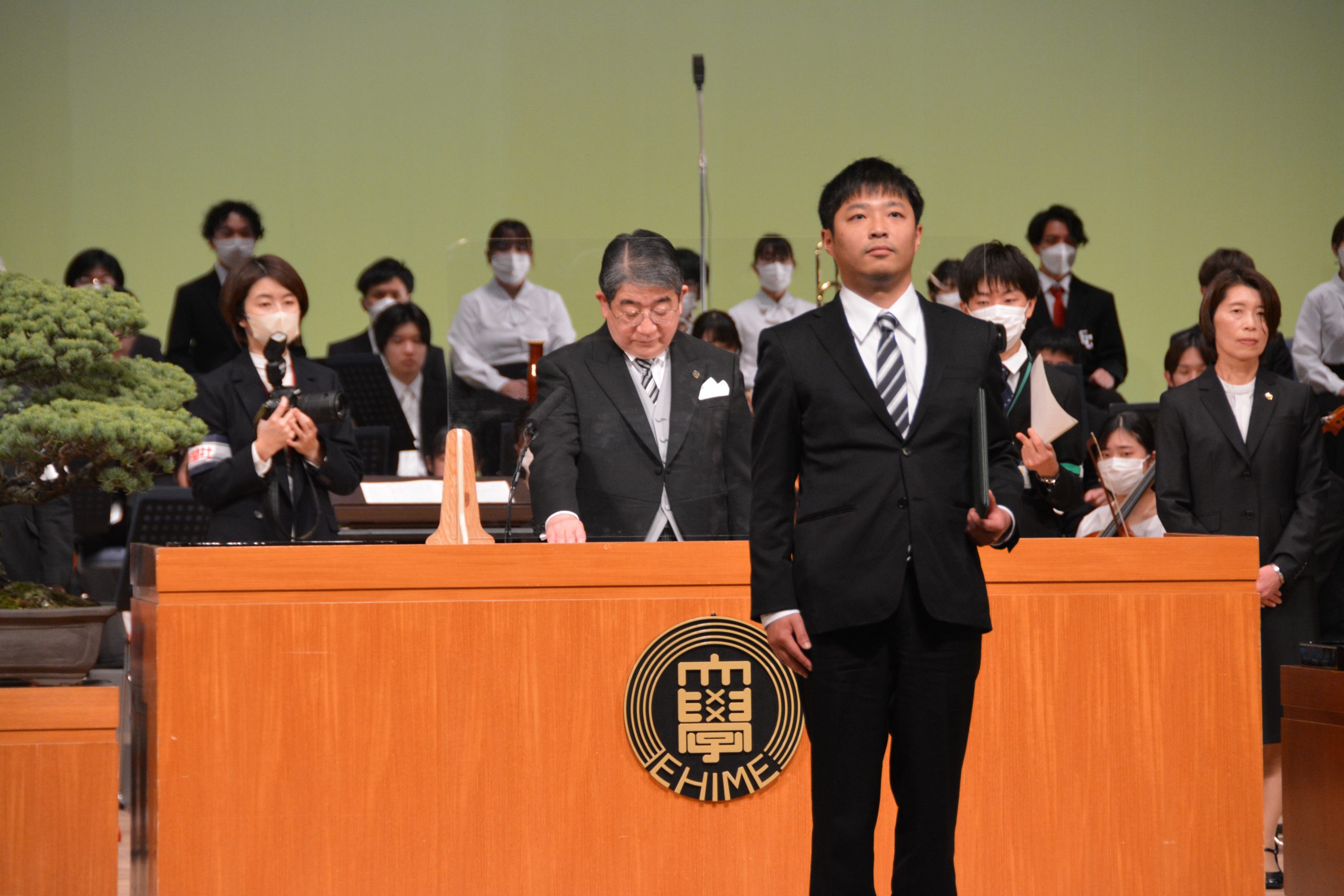 令和5年3月24日(金)、愛媛県県民文化会館にて、令和4年度愛媛大学学位記授与式が挙行されました。