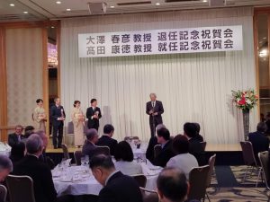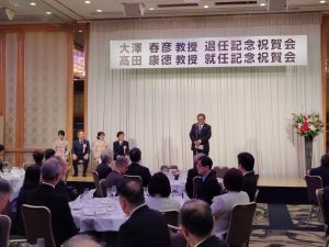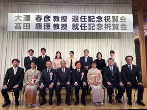 2026年2月8日、大澤春彦教授退官・髙田康徳教授就任記念祝賀会を開催しました。 長年にわたり教育・研究・診療に多大なご貢献をいただいた大澤教授への感謝と、髙田教授の門出を祝う、温かい会となりました。 会では大澤教授のこれまでの歩みを振り返り、終始和やかな雰囲気に包まれました。また、髙田教授からは今後の抱負についてのお話をいただき、新体制への期待が高まるひとときとなりました。