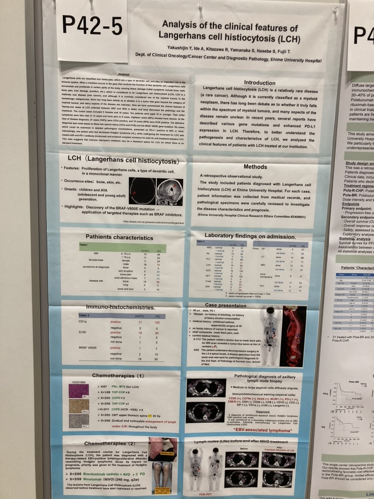 #52.「Nivolumabが著効したLangerhans cell histiocytosisとclassic Hodgkin lymphoma合併例」長谷部晋士、山中伸太郎、山本将一朗、藤井知美、薬師神芳洋、北澤理子「第130回 日本内科学会 四国地方会」2024.6.15 (徳島)