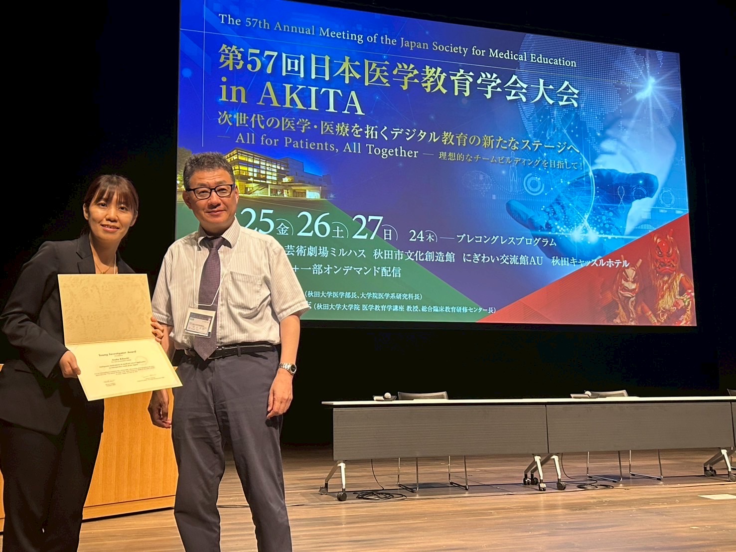 2025年7月25日〜27日に秋田県のあきた芸術劇場ミルハス、秋田市文化創造館、にぎわい交流館AUで開催された第57回日本医学教育学会学術大会において、当講座の菊池明日香先生が若手研究者賞を受賞されました。