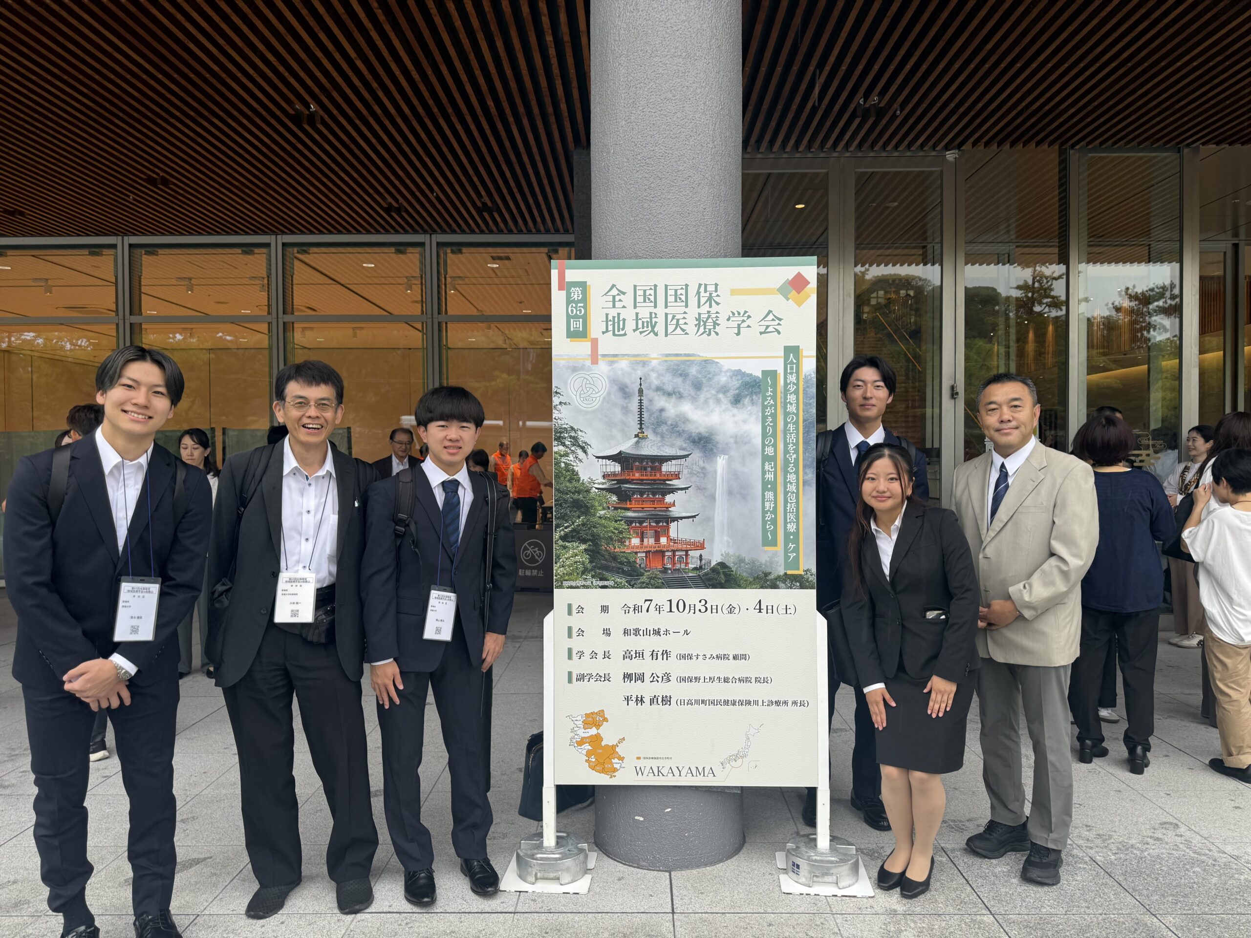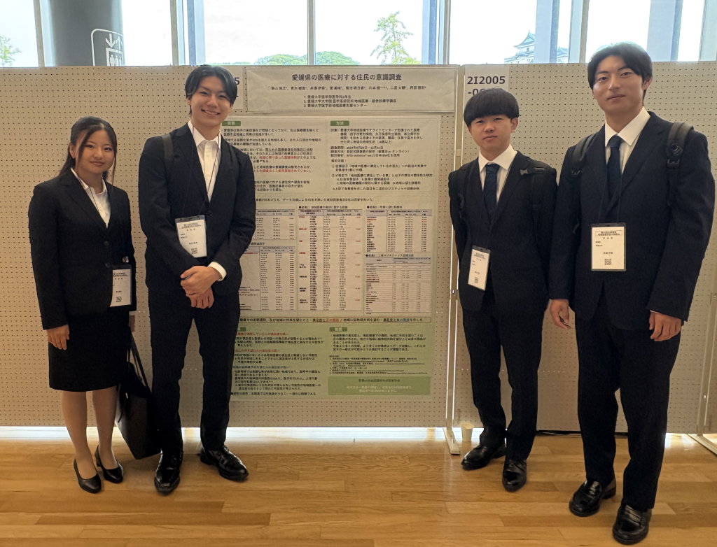 2025年10月2日〜4日に和歌山県の和歌山城ホールで開催された、第65回全国国保地域医療学会において、当講座に基礎配属学生として昨年度勉強しに来てくれた現在医学科2年生の青木さん、井澤さん、菅さん、築山さんがポスター発表をしました。