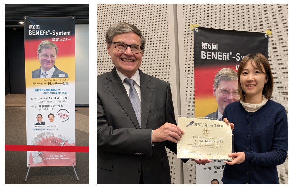 ドイツ、デュッセルドルフ大学矯正歯科のDrescher教授にご講演いただいた次世代型矯正アンカースクリューシステムであるBENEfitシステムは、大変興味深い内容で、基礎から臨床に至るまでわかりやすく説明していただき、新たな知識を得ることができました。