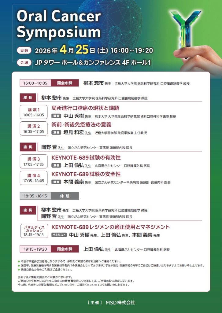 口腔癌診療に注力している全国の口腔外科の代表者が一堂に会し、シンポジウムが開催されました。