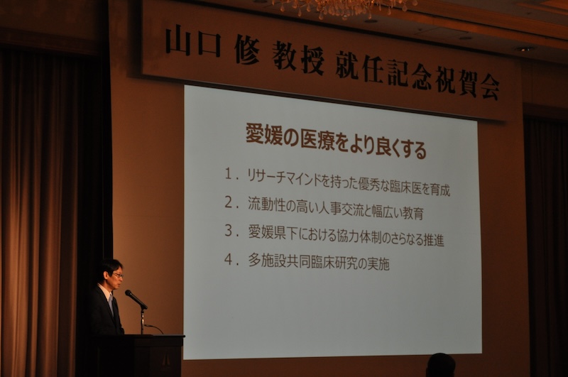 HOME > 医局ブログ > 愛媛大学 第二内科 同窓会 が開催されました。 愛媛大学 第二内科 同窓会 が開催されました。 2018年06月29日 医局ブログの記事一覧 2018年6月24日(日) 11時から 愛媛大学 第二内科 同窓会 が開催されました。 同窓会では、まず 山口 修 新教授 から 今後,第二内科としての基本的姿勢や取り組むべき諸課題についての ご講演をいただきました. 続いて,新入局員 8人 の名前があげられ、 そのうち 今回 同窓会に参加した 5名の 医員の挨拶が行われました。 その後,各会からの 方針や 事業内容などについての報告をいただき、 滞りなく、同窓会は終了いたしました。 ← 第112回 日本循環器学会中国・四国合同地方会 山口 修 教授 就任記念祝賀会 が開催されました。 →