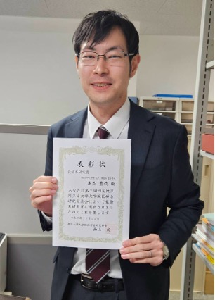 島本先生受賞おめでとうございます!今回の受賞は、島本先生の日々の努力の結果だと思います。データもそろいつつありますので、論文化に向けて頑張ってください。今後の益々の活躍を期待しております。