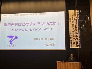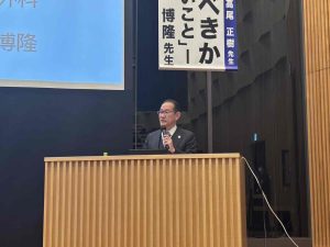 2025年12月6日、第184回愛媛整形外科集談会を開催いたしました。 今回は特別講演として、日本整形外科学会理事長であり、帝京大学医学部整形外科講座 主任教授の河野博隆先生をお招きし、 「整形外科はこのままでいいのか? ―『やるべきこと』と『やりたいこと』―」 をテーマにご講演いただきました。 整形外科が今後どのような方向を目指すべきか、また医療者が社会へ還元できる取り組みには何が求められているのかを、多角的な視点からご提示いただき、参加した若手医師にとっても大変示唆に富む講演となりました。