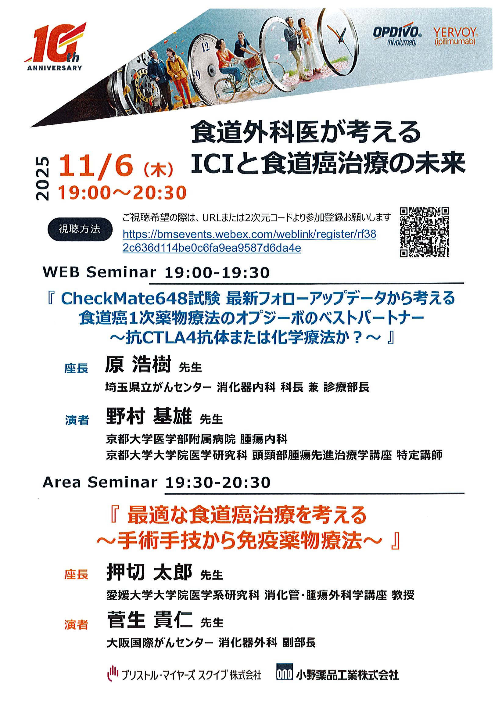 11月6日(木)「食道外科医が考えるICIと食道癌治療の未来」が開催されます。