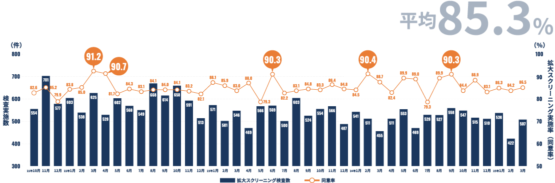 愛媛県拡大新生児スクリーニング実施率(同意率)の推移(全経過)